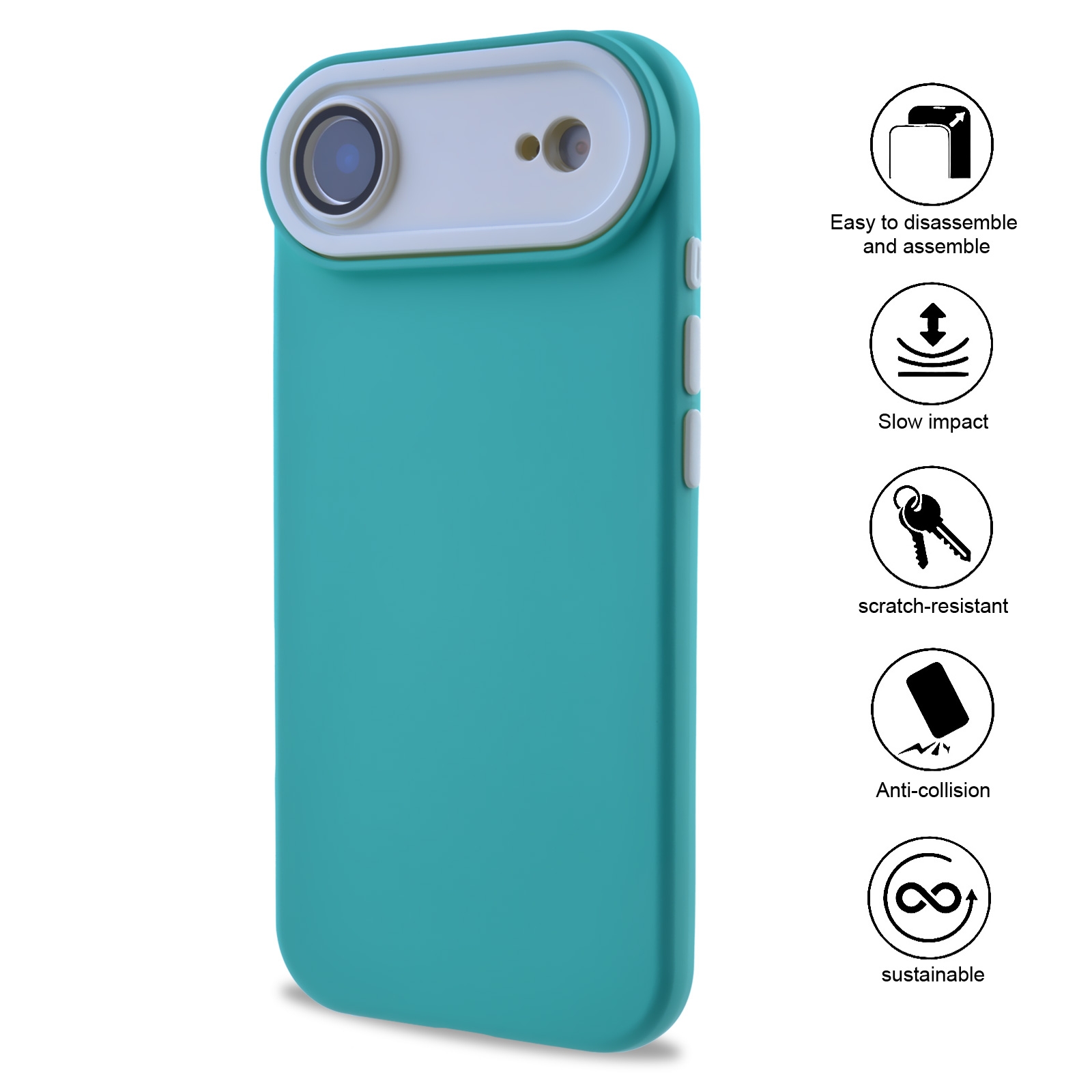 • Two-Tone Color Block Designl - Designed with a contrasting color scheme where the raised camera frame differs from the main body color.