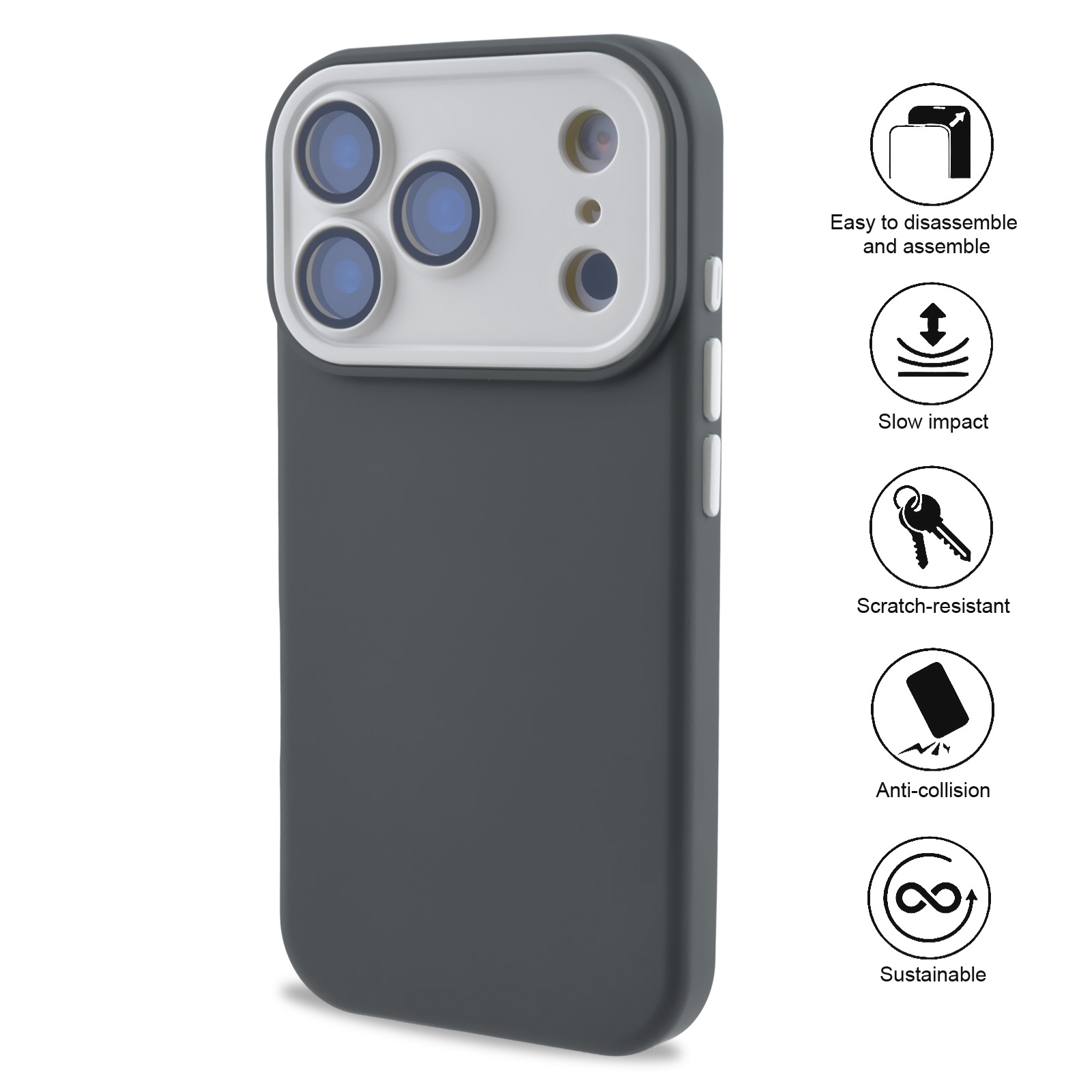 • Two-Tone Color Block Designl - Designed with a contrasting color scheme where the raised camera frame differs from the main body color.