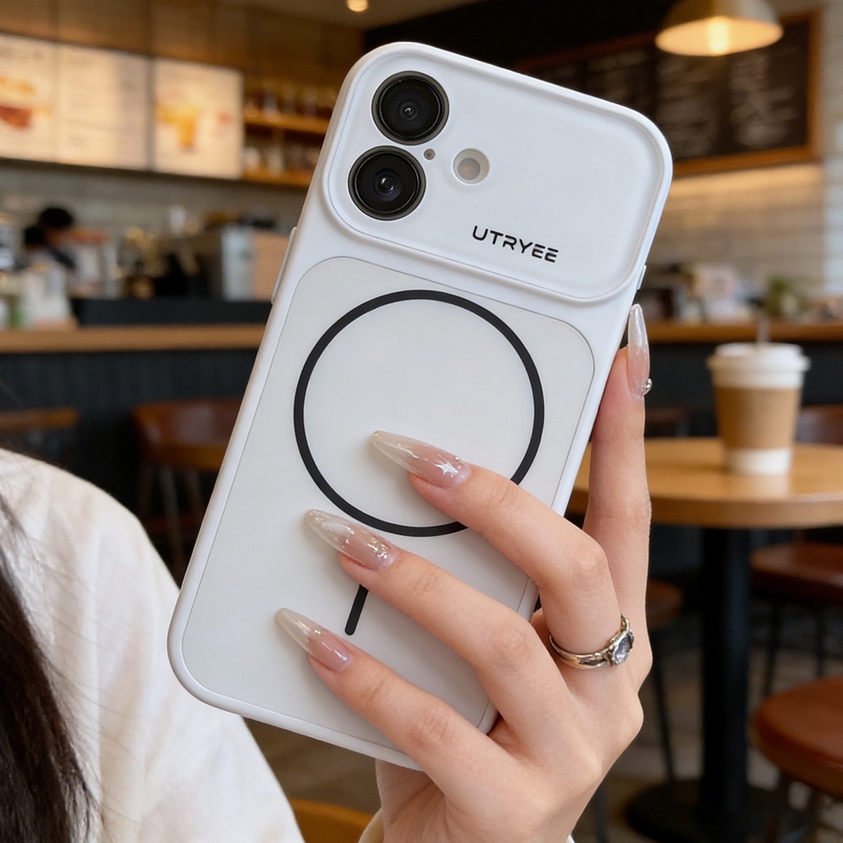 • Shockproof TPU Bumper: Constructed with a flexible white Thermoplastic Polyurethane (TPU) border. This bumper absorbs shock from accidental drops and provides a secure, non-slip grip for everyday handling.
