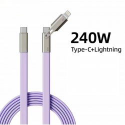 240W 2-in-1 Charging Cable for iPhone and USB-C Devices - 1.2m Silicone Data Cable - Purple