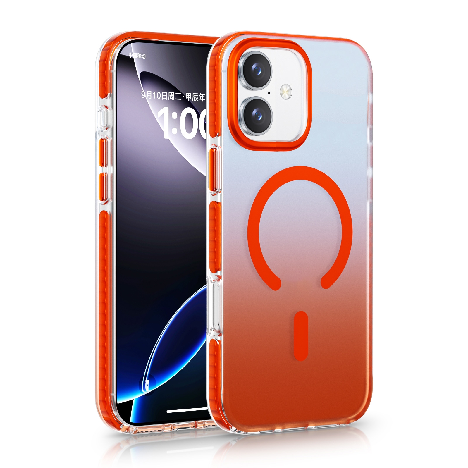 Frosted Clear gradient Magnetic Case for iPhone 17 - Orange
