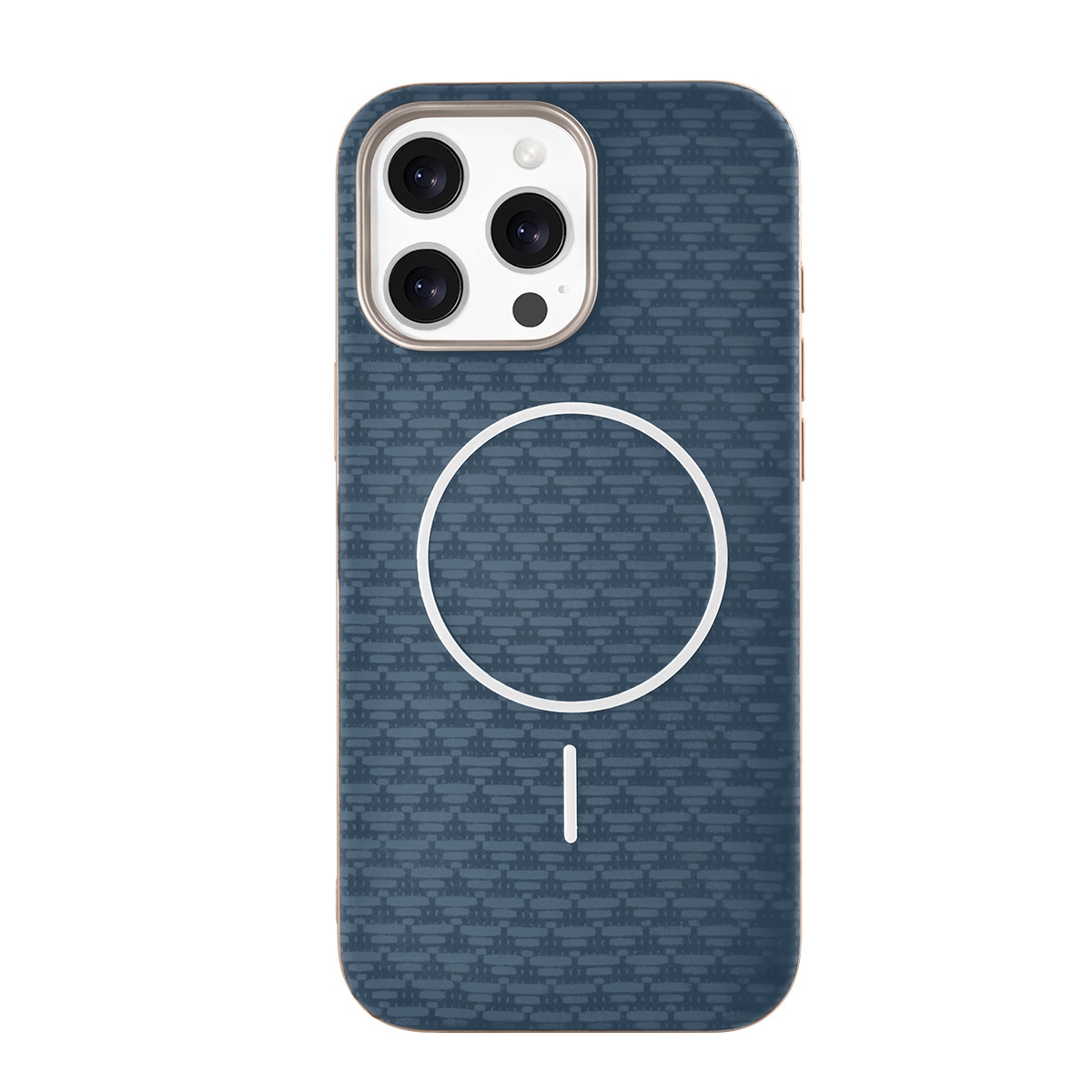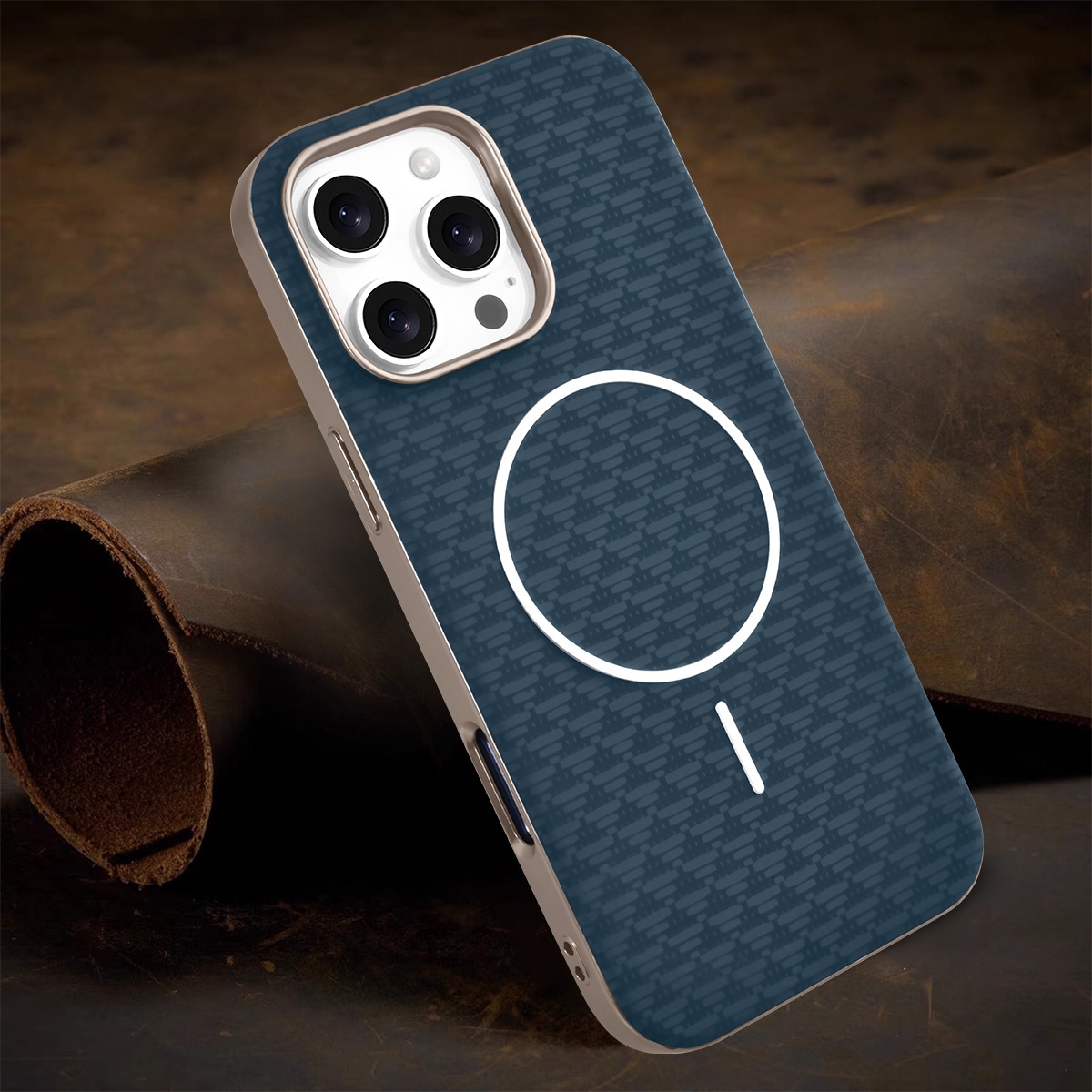 Carbon Fiber Leather MagSafe Case for iPhone 15 Pro – Navy Blue