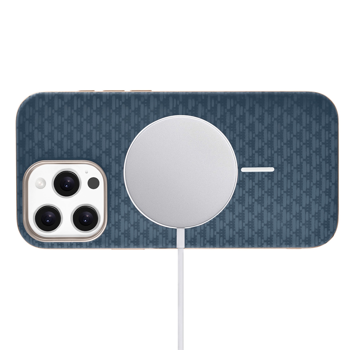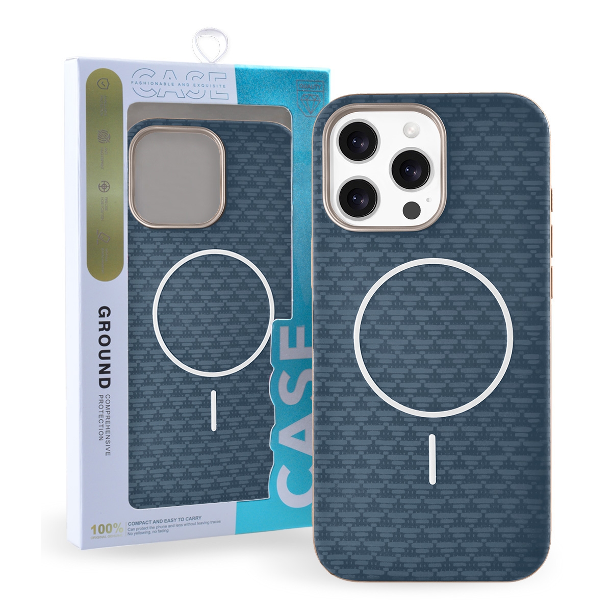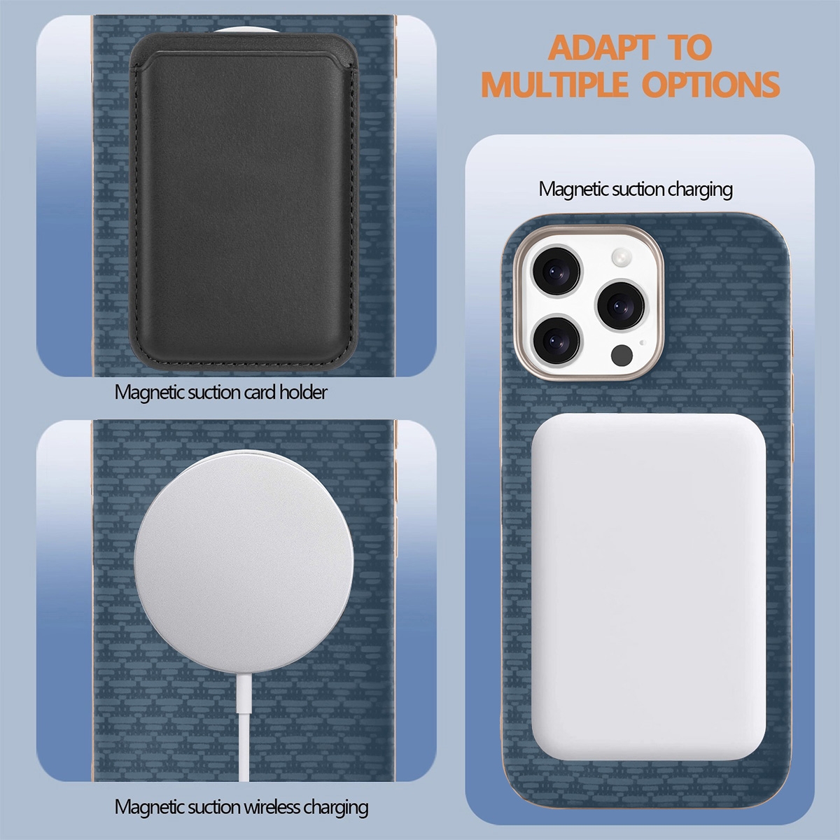 MT-TC-IP-00131DB Carbon Fiber Leather Case for iPhone 15 Pro – MagSafe Compatible, Non-slip, Slim – Navy Blue (1PCS)