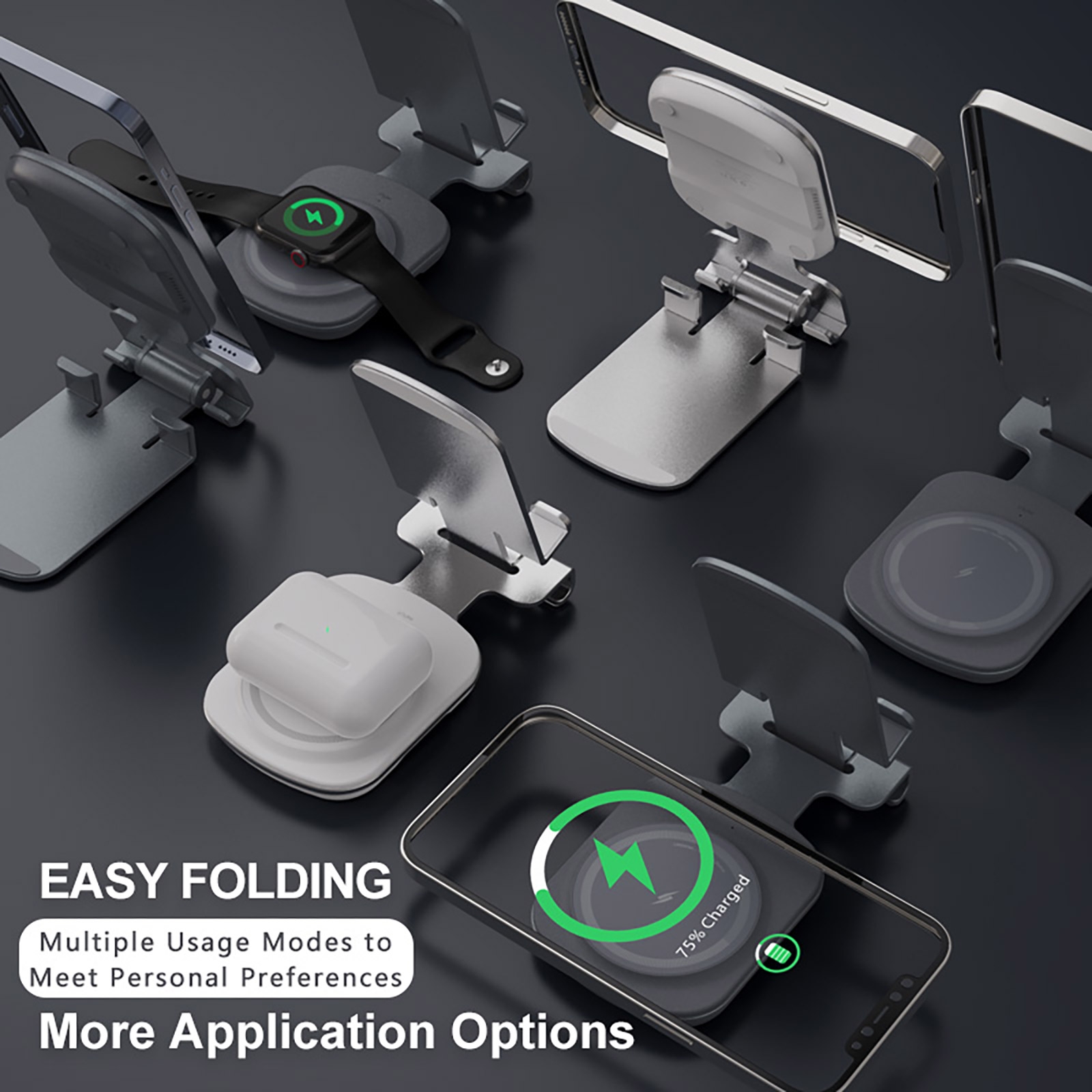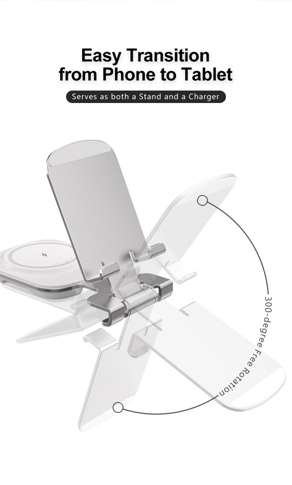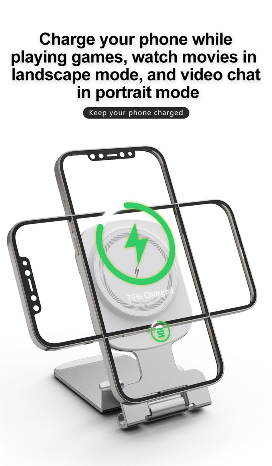 • Magnetic Charging Support:Functions as both a phone stand and magnetic wireless charger, combining multiple uses into one compact and convenient structure.