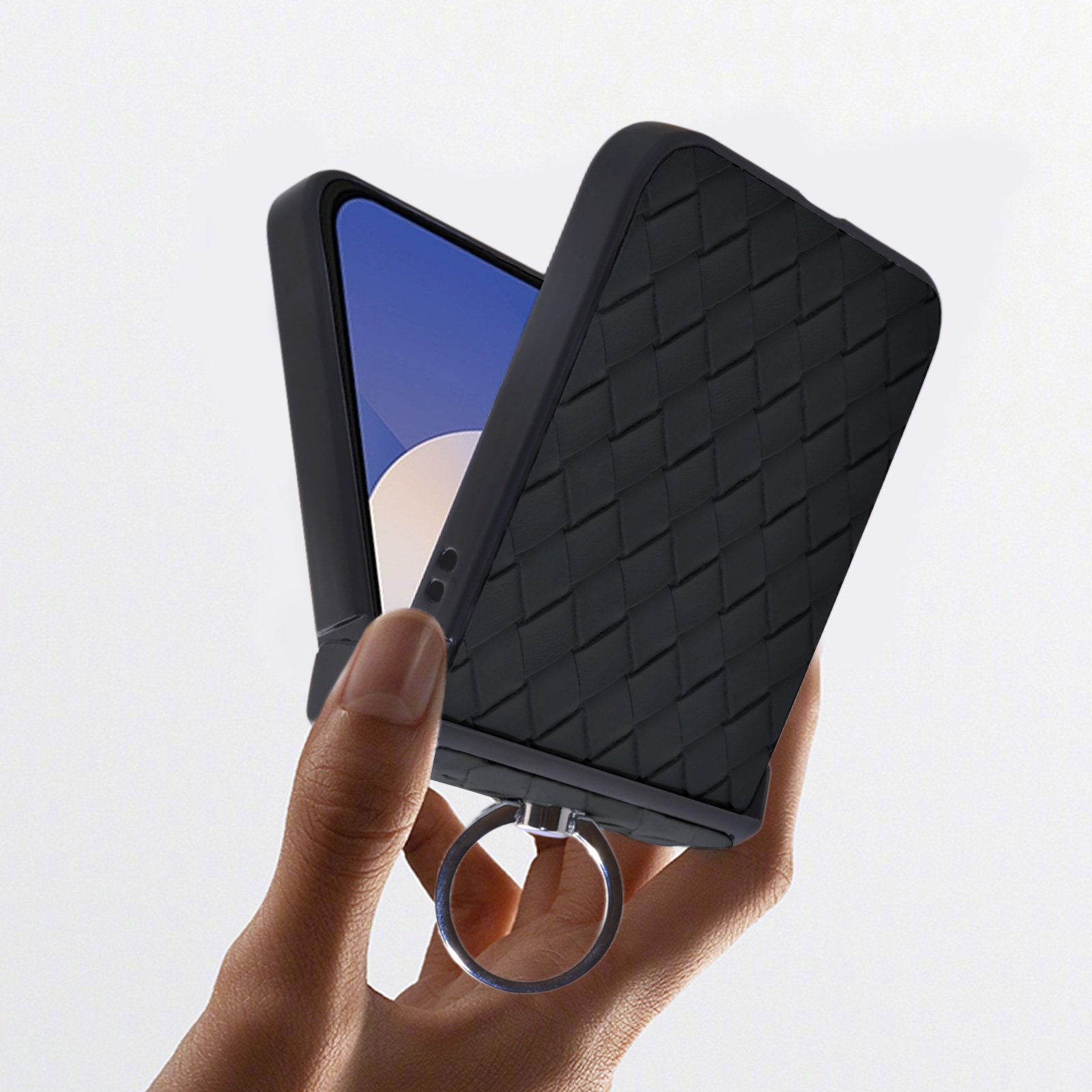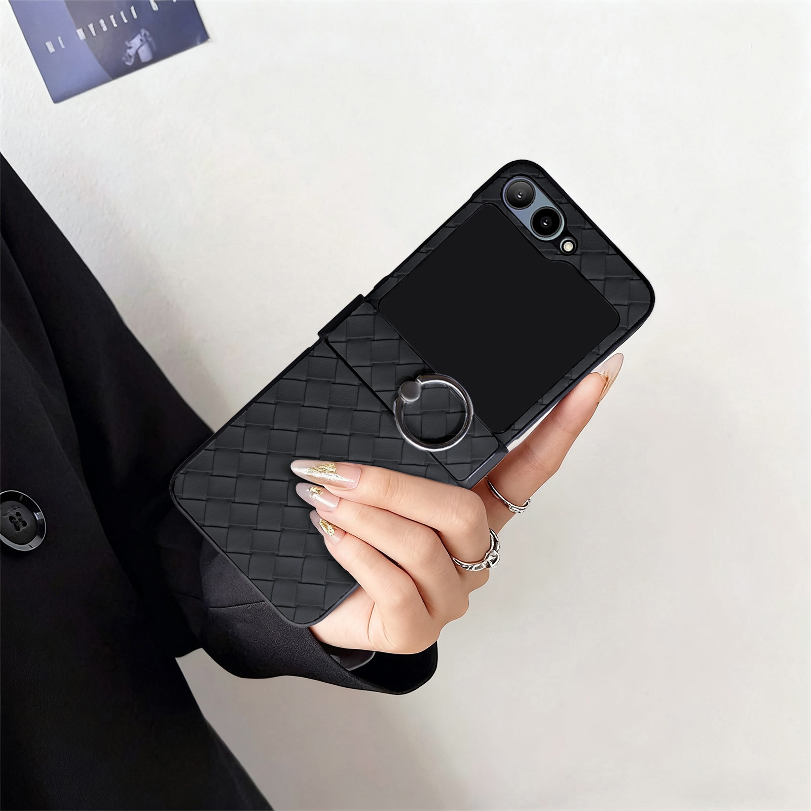 MT-PC-SS-00502B Samsung Z Flip 6 Case with Ring Holder – Black Plaid Folding Cover (1PCS)