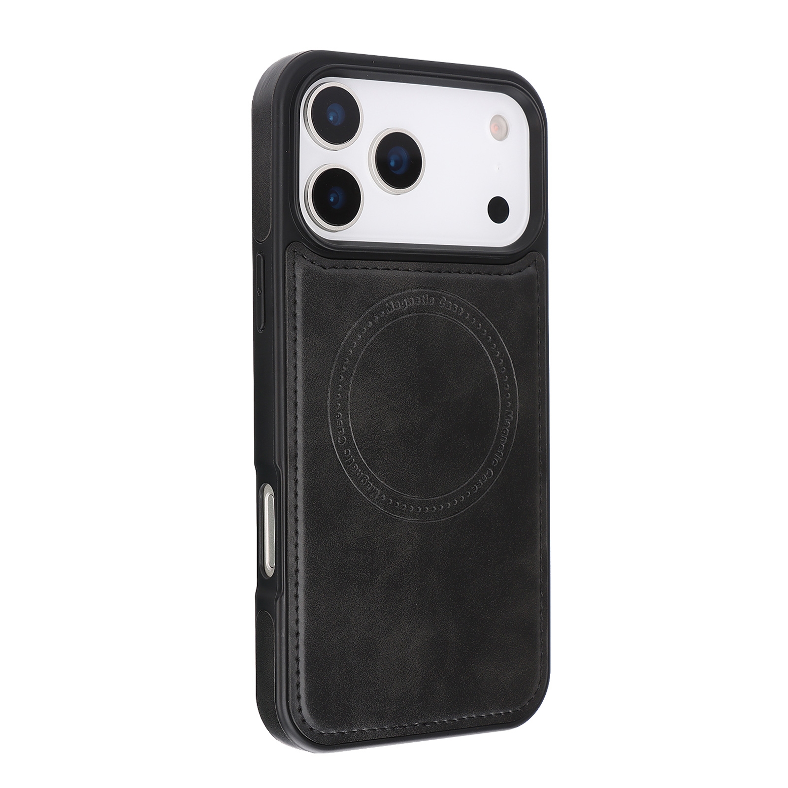 MT-TC-IP-00149BK iPhone 17 Pro Max Magnetic Case Black – Vegan Leather Shockproof MagSafe Cover (1PCS)