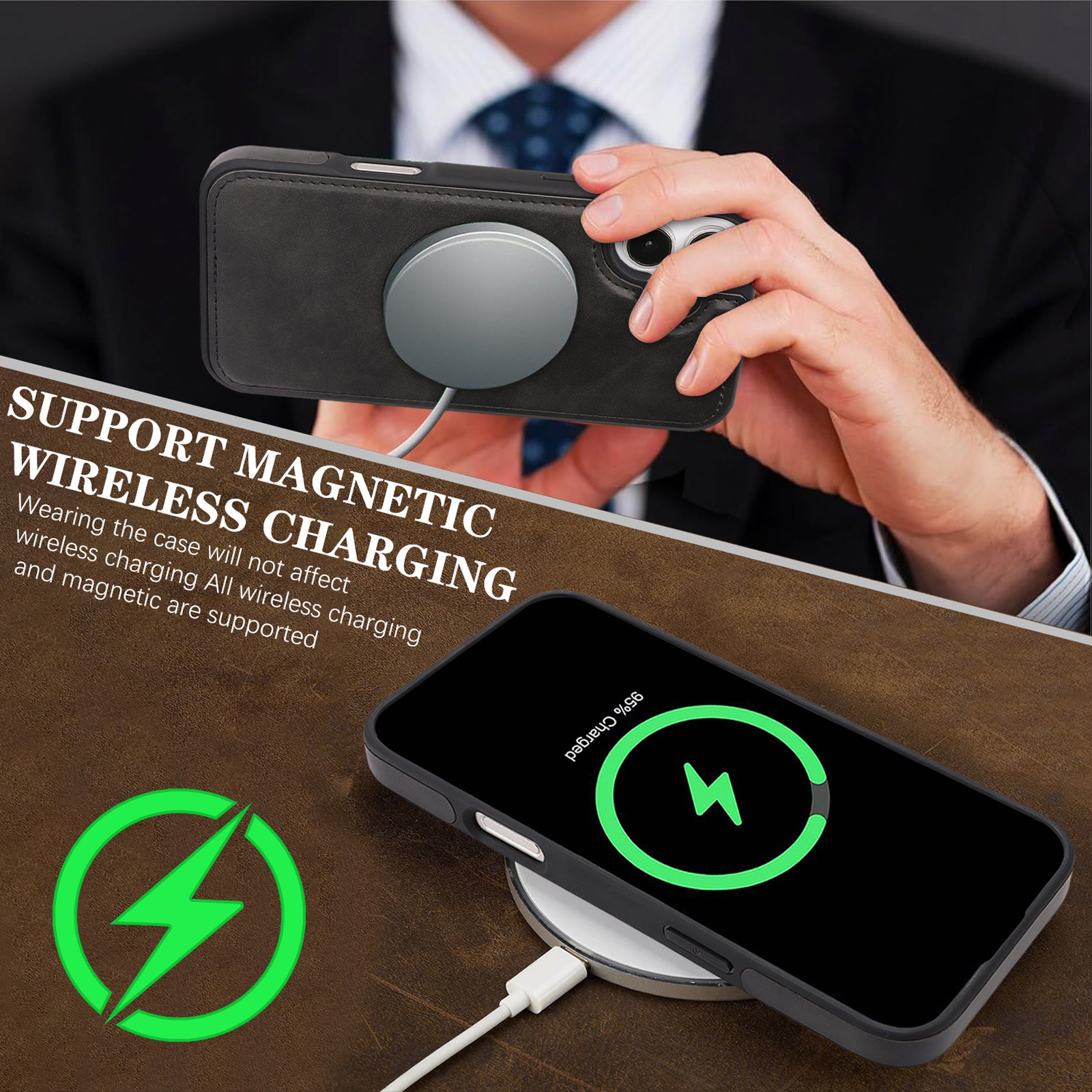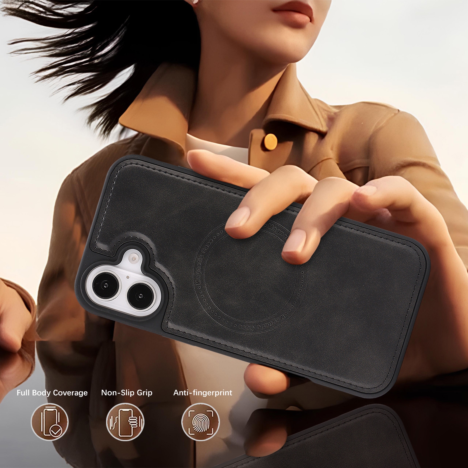MT-TC-IP-00150BK iPhone 17 Magnetic Case Black – Vegan Leather Shockproof MagSafe Cover (1PCS)