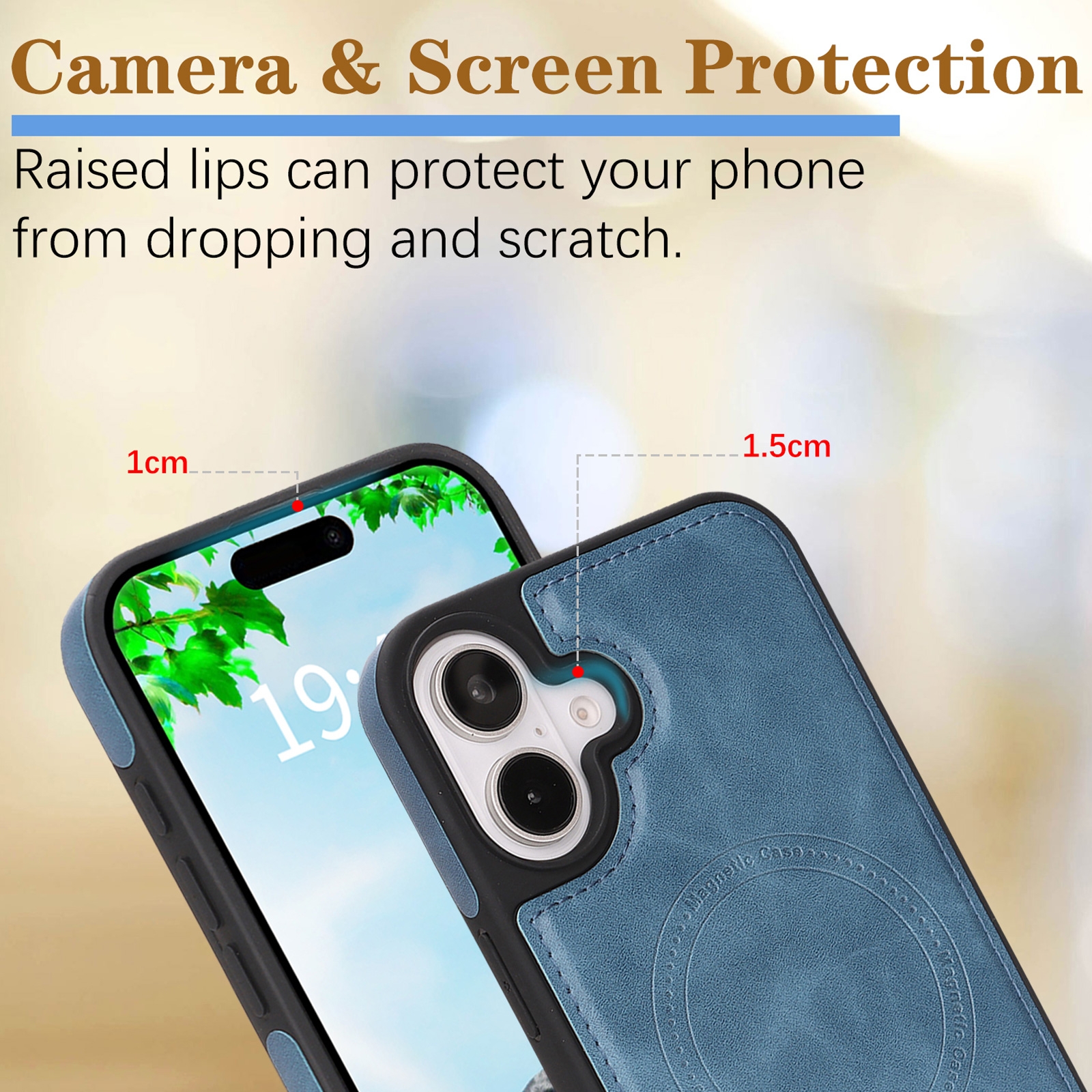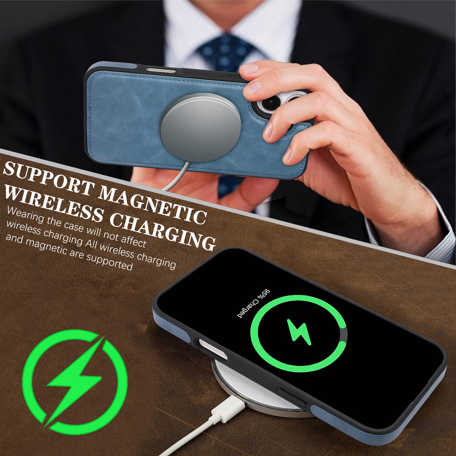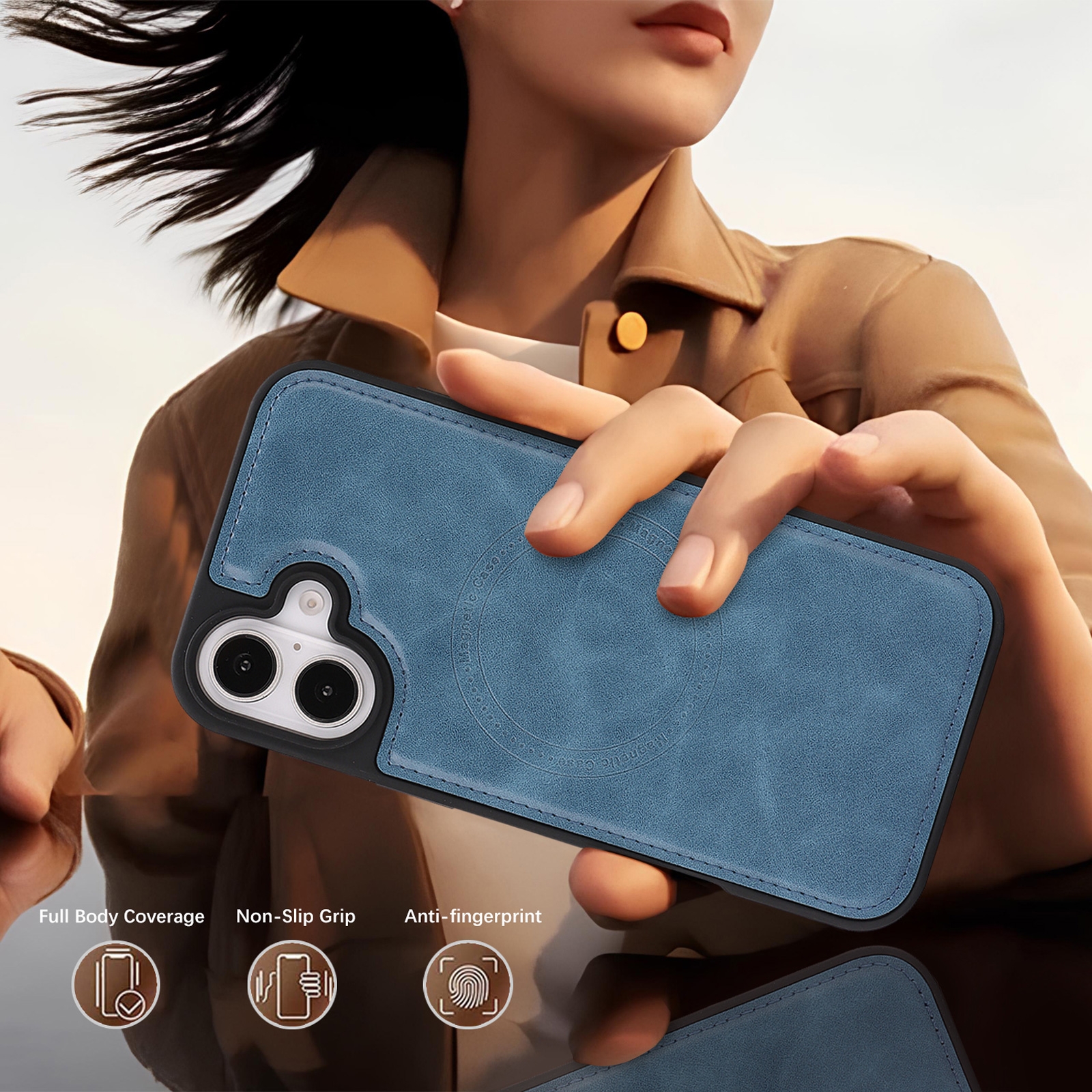 MT-TC-IP-00150BU iPhone 17 Magnetic Case Blue – Vegan Leather Shockproof MagSafe Cover (1PCS)