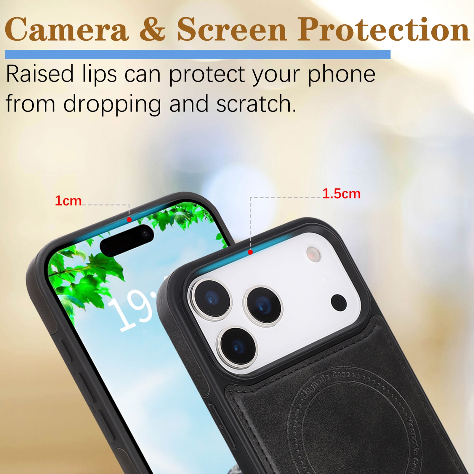 MT-TC-IP-00148BK iPhone 17 Pro Magnetic Case Black – Vegan Leather Shockproof MagSafe Cover (1PCS)