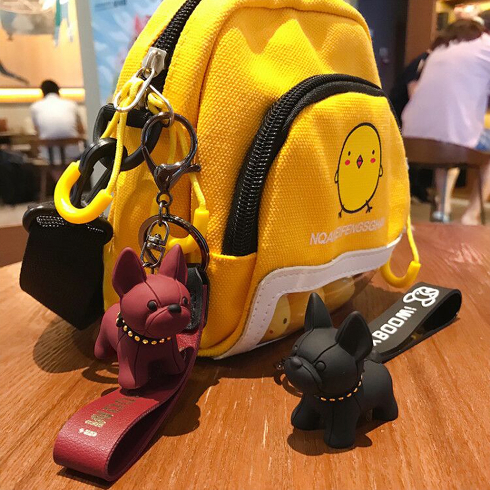 • Design: Features a detailed French Bulldog figure with collar, styled in red color.