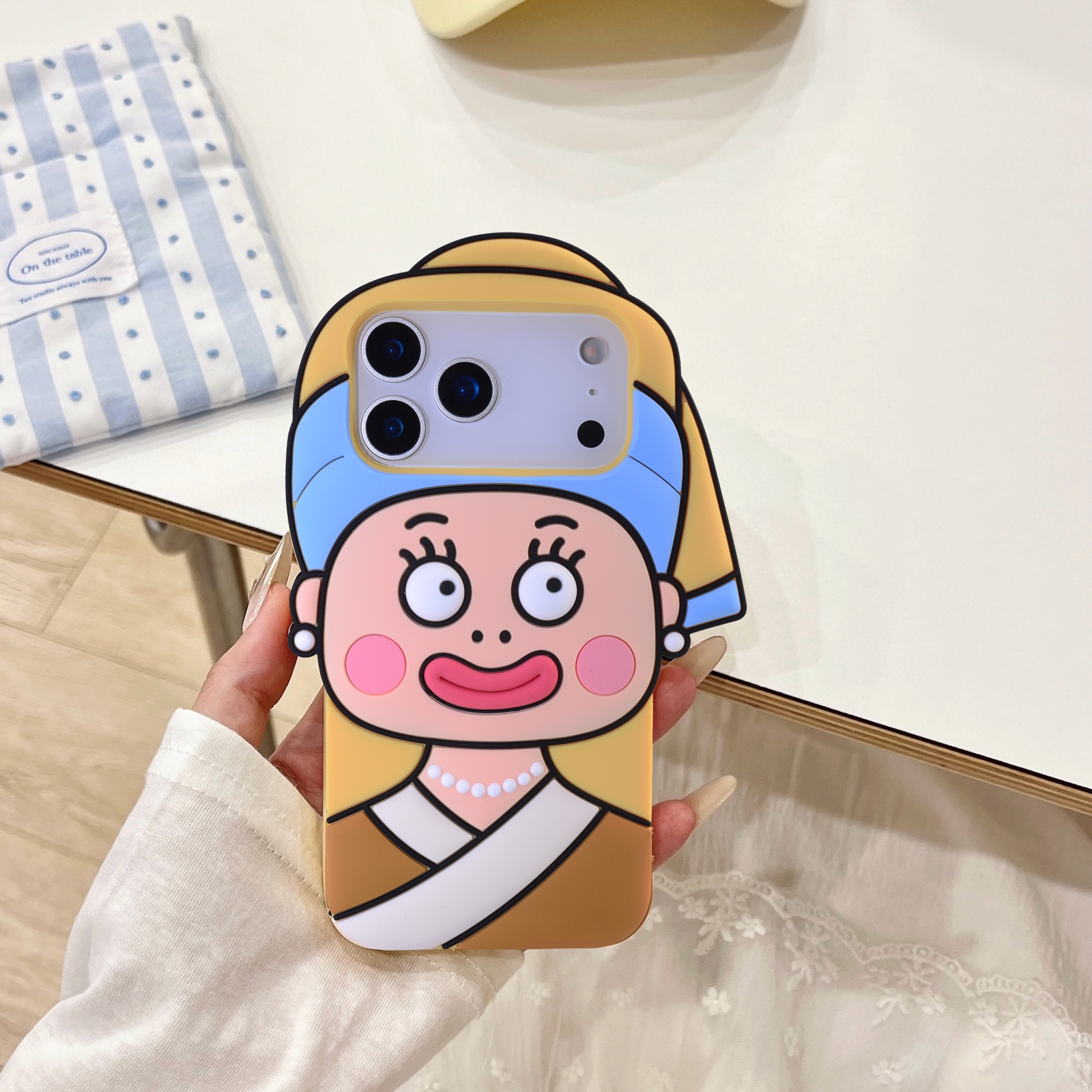 • Comical 3D Sculpted Design: Distinctive oversized 3D rendition of the "Sausage Girl with a Pearl Earring" in layered silicone.