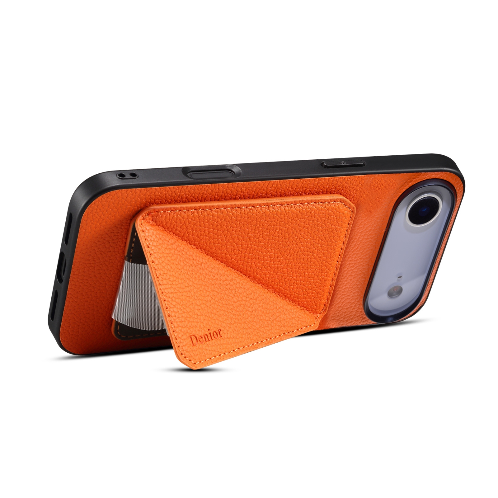 • Detachable MagSafe Card Wallet: Magnetic wallet in matching orange leather holds essential cards safely.