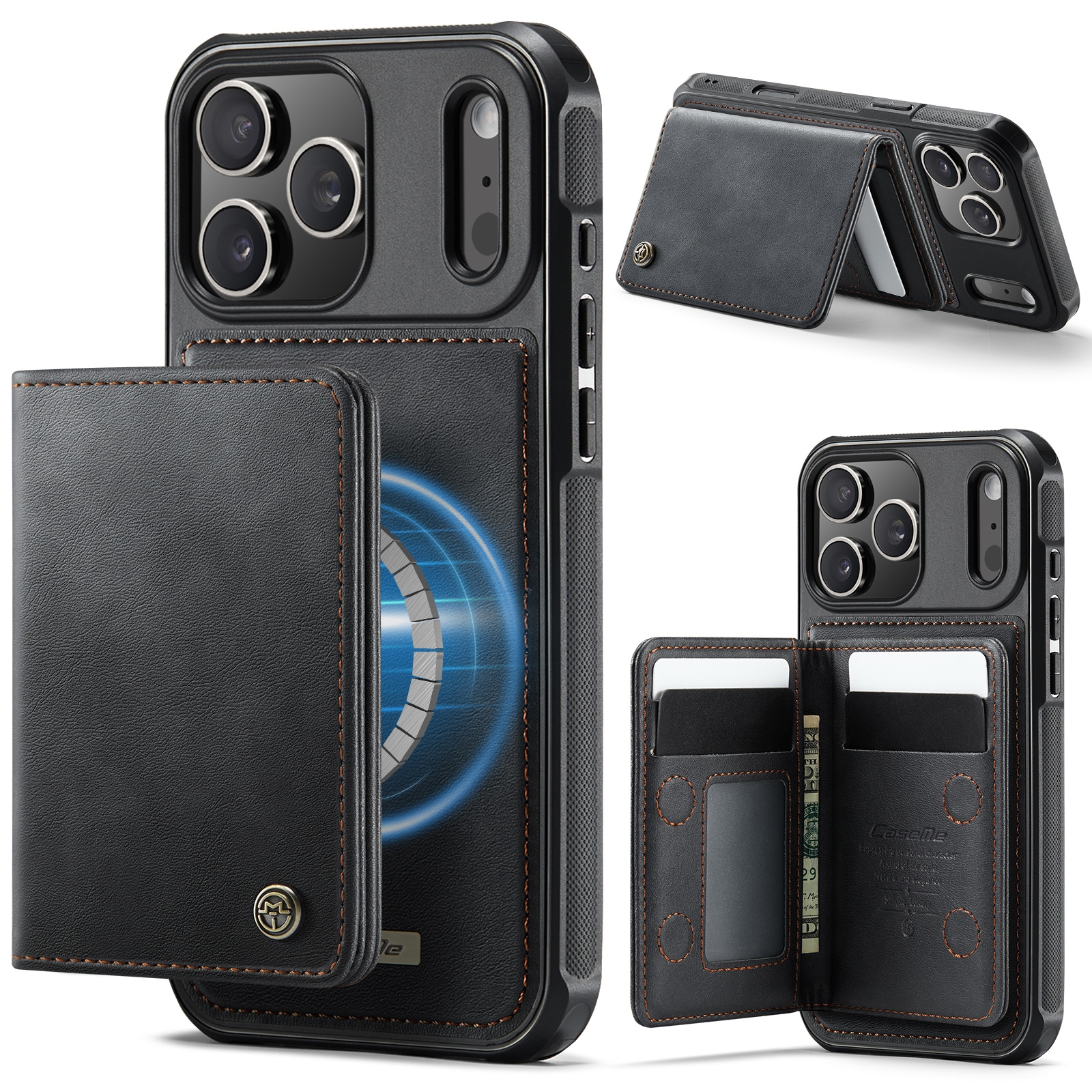 CS-CME-0026-2855BK iPhone 17 Pro Max Magnetic Case with Card Holders - Black (1PCS)