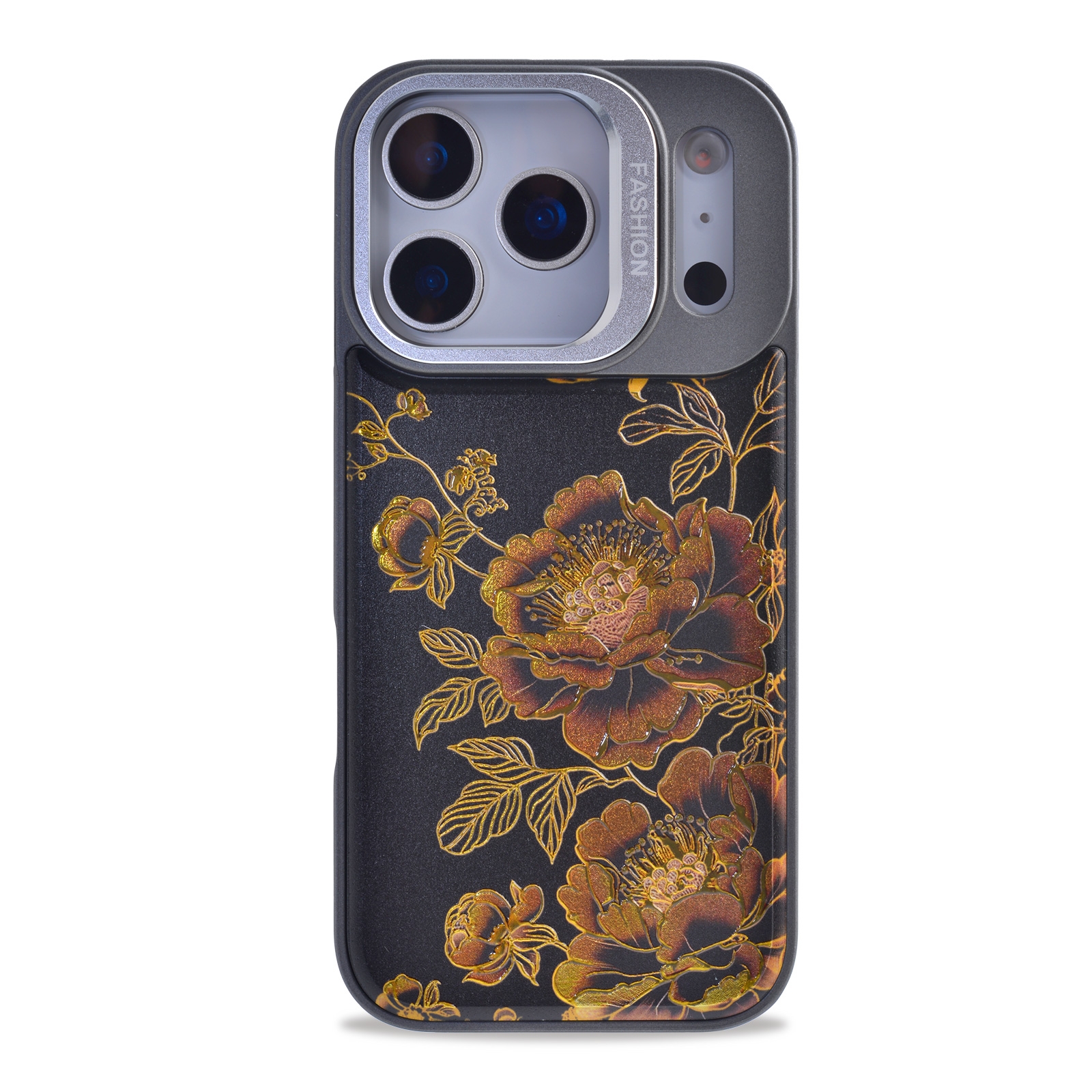 CS-UN-0036-2855GD iPhone17 Pro Max Black Background Gilded Peony Magnetic Case - Gold (1PCS)