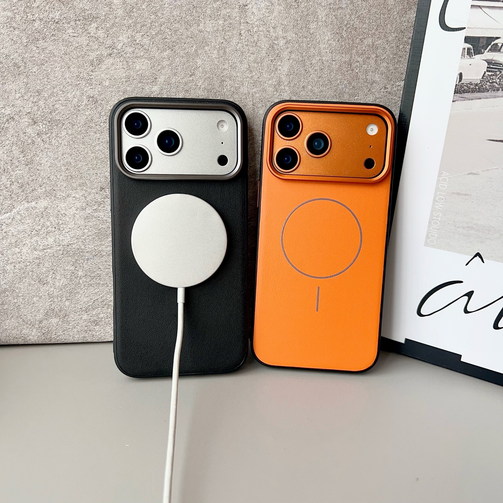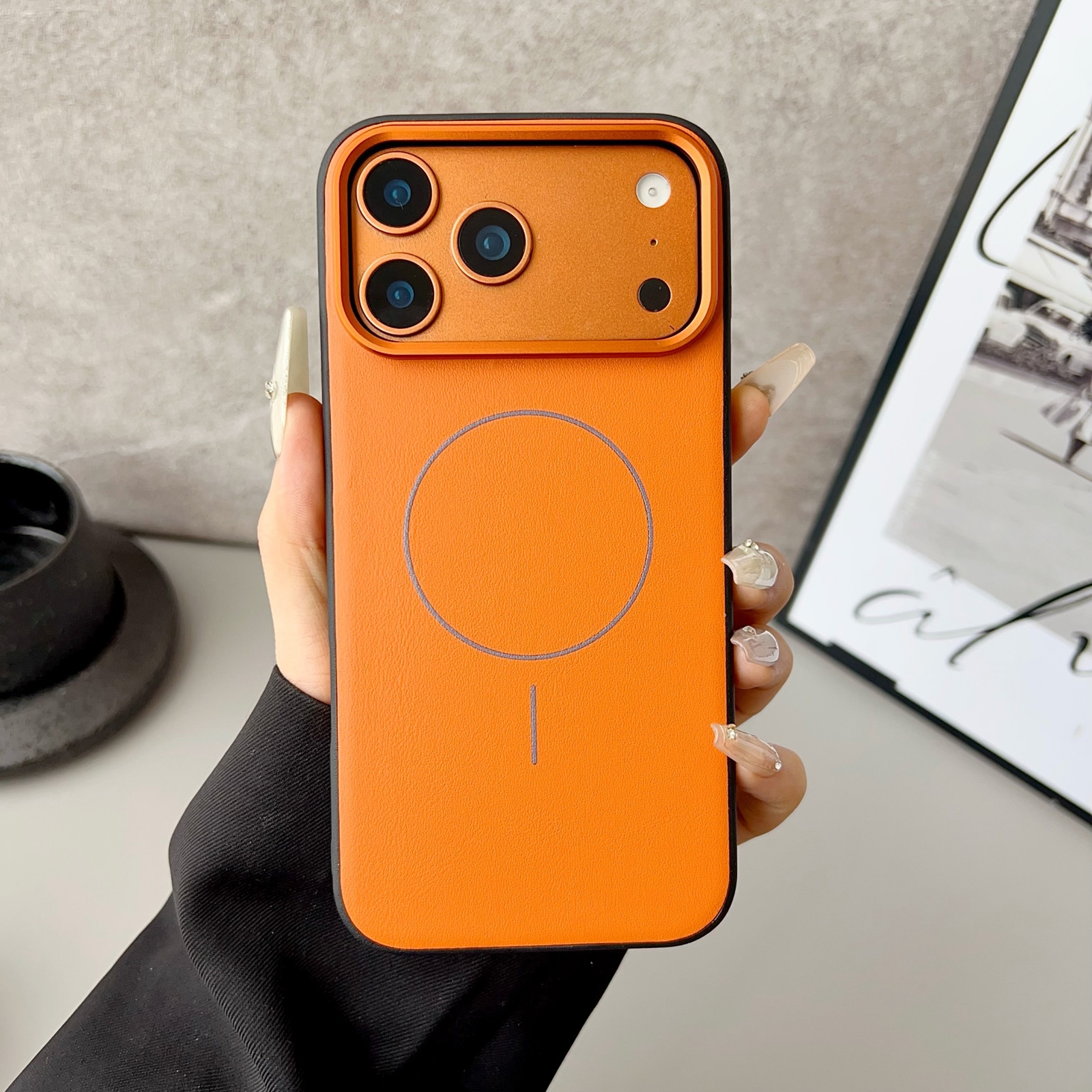 MagSafe iPhone Case with PU Leather Back & Raised Lens Frame for iPhone 17 Pro Max