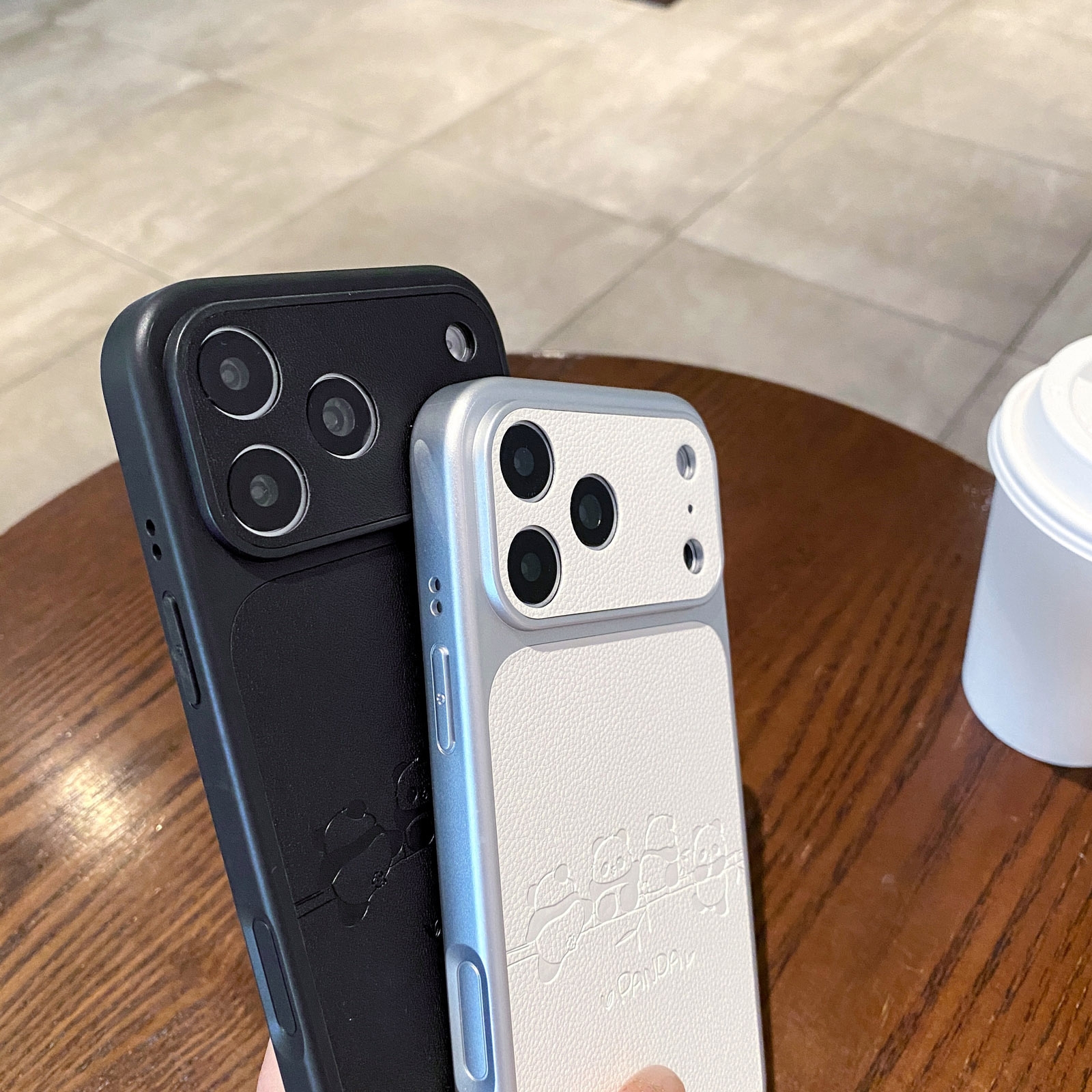 Cute Panda Leather Pattern Back iPhone 17 Case - TPU Shockproof Phone Cover, White