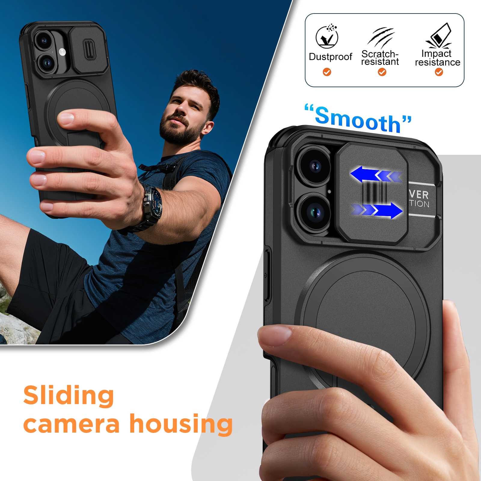 Heavy-Duty Rugged Case Features with Sliding Camera Cover for iPhone 17
