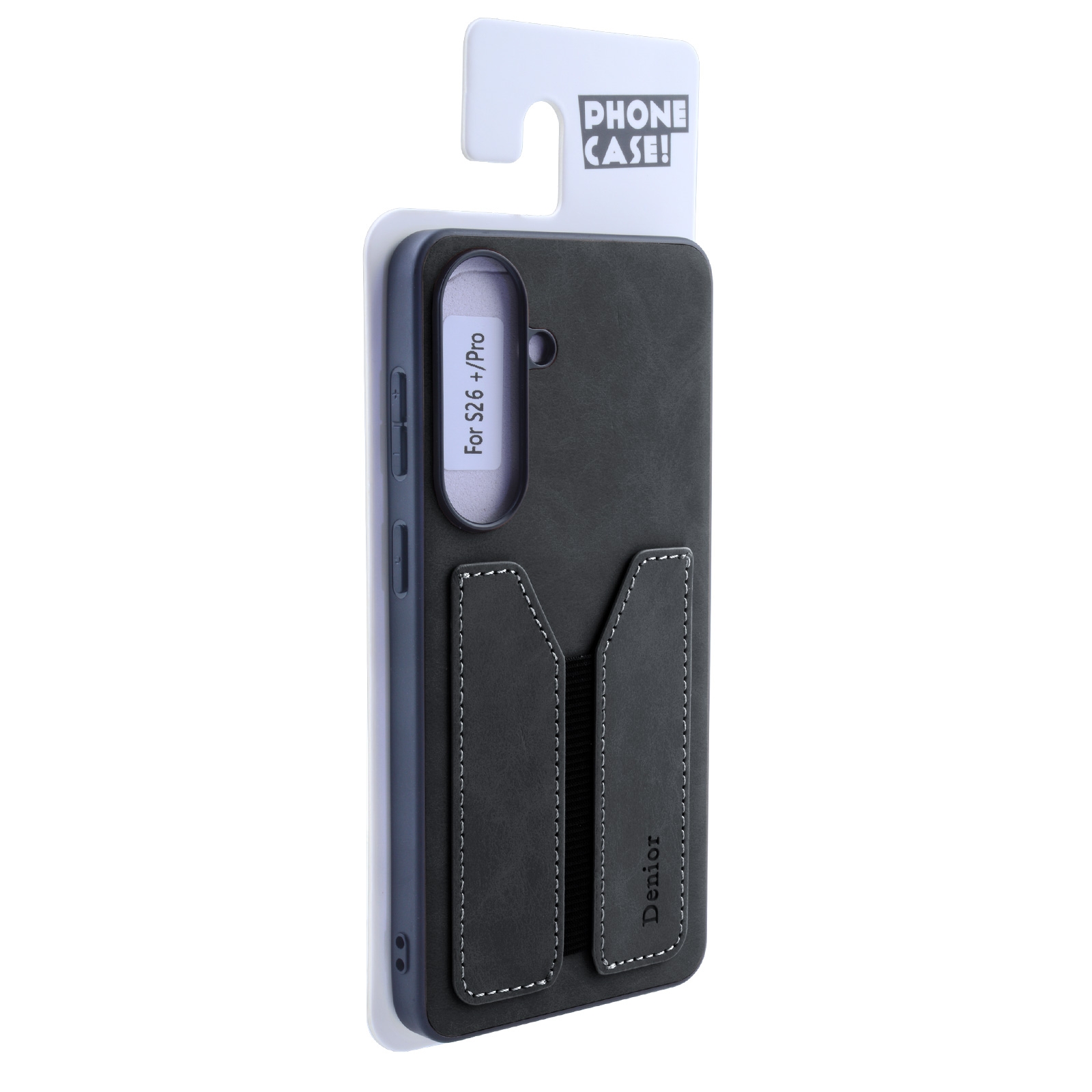 CS-DIR-0098-2917BK Retro Faux Leather Texture Case with Card Holder for S26 Plus, Black (1PCS)