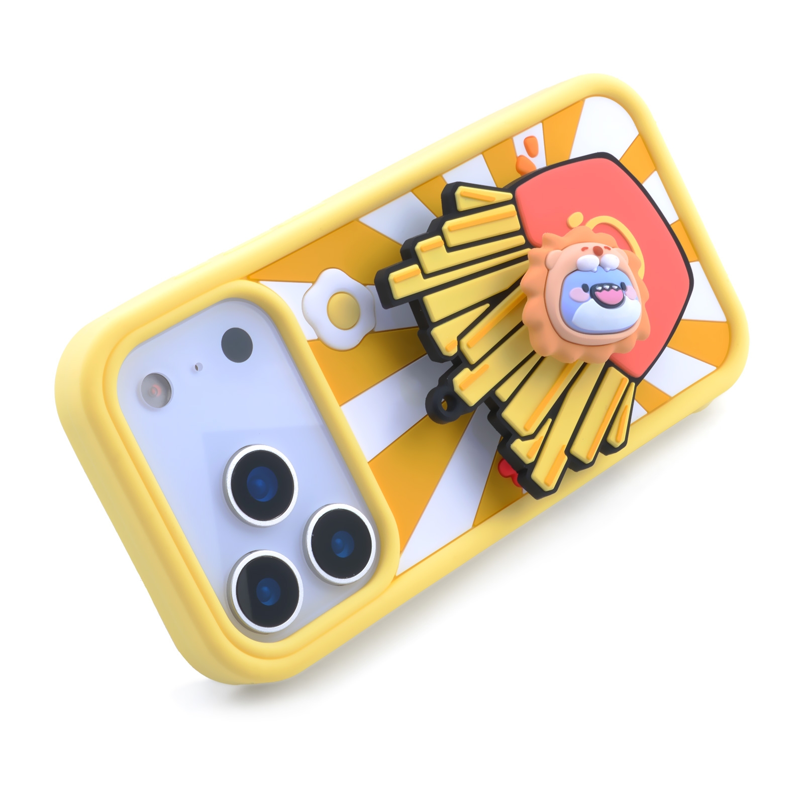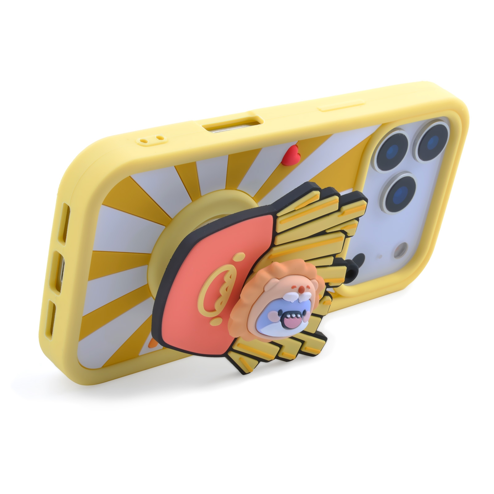 3D Fat Shark with French Fries for iPhone 17 Pro - Soft Silicone cover with Rotatable Kickstand - Yellow