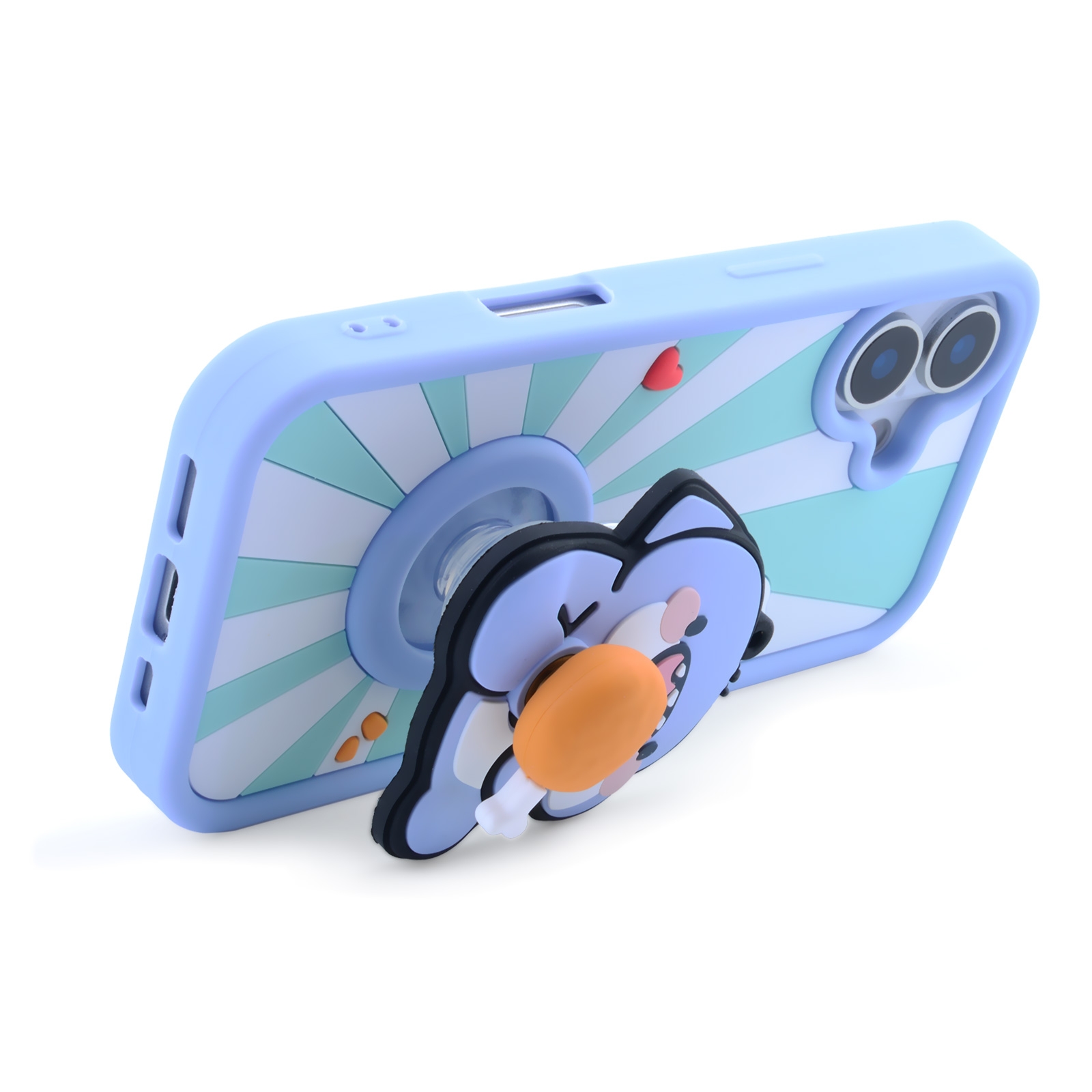 CS-UN-0101-2852LB 3D Fat Shark with Chicken Drumstick for iPhone 17 - Soft Silicone cover with Rotatable Kickstand - Light Blue (1PCS)