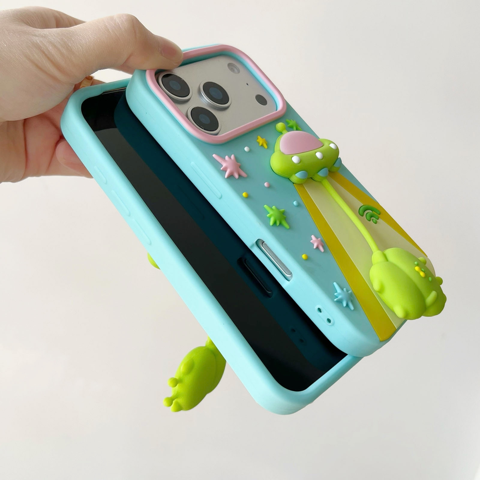 CS-UN-0100-2854LB Cute 3D Alien UFO Space Silicone Case for iPhone 17 Pro - Blue (1PCS)