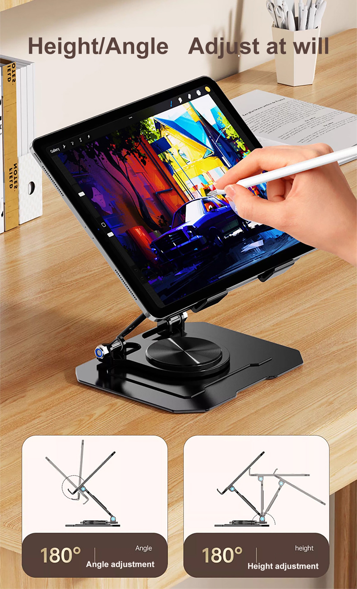 LS-UN-0124-2862SL Metal Laptop Stand - 360° Rotating Cooling Foldable Riser - Silver (1PCS)