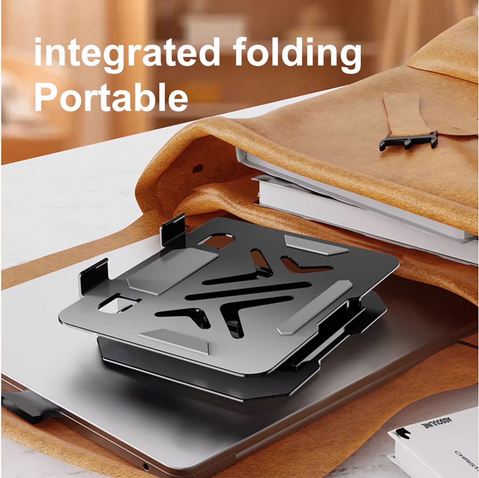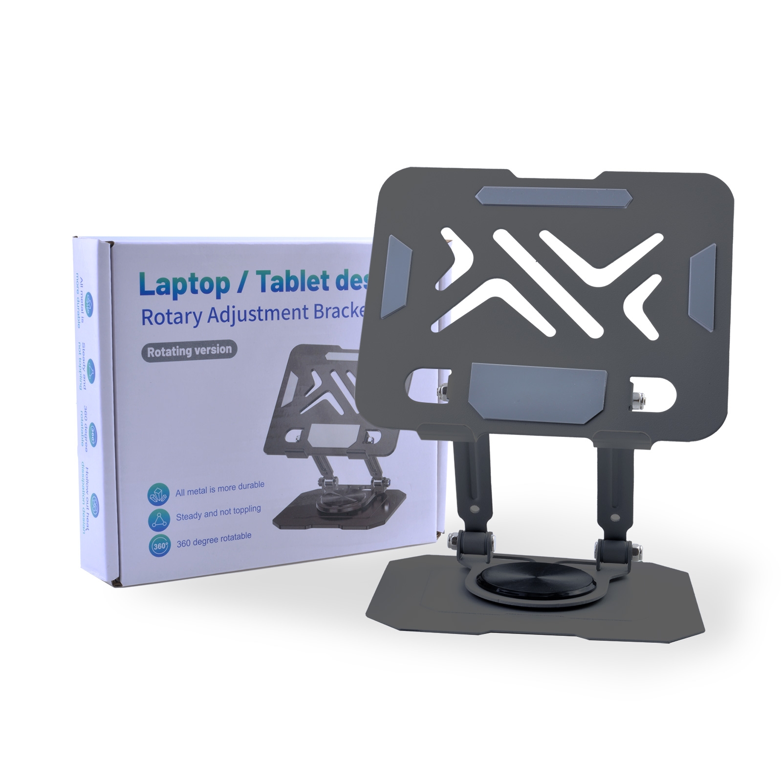 LS-UN-0124-2862BK Metal Laptop Stand - 360° Rotating Cooling Foldable Riser, Black (1PCS)