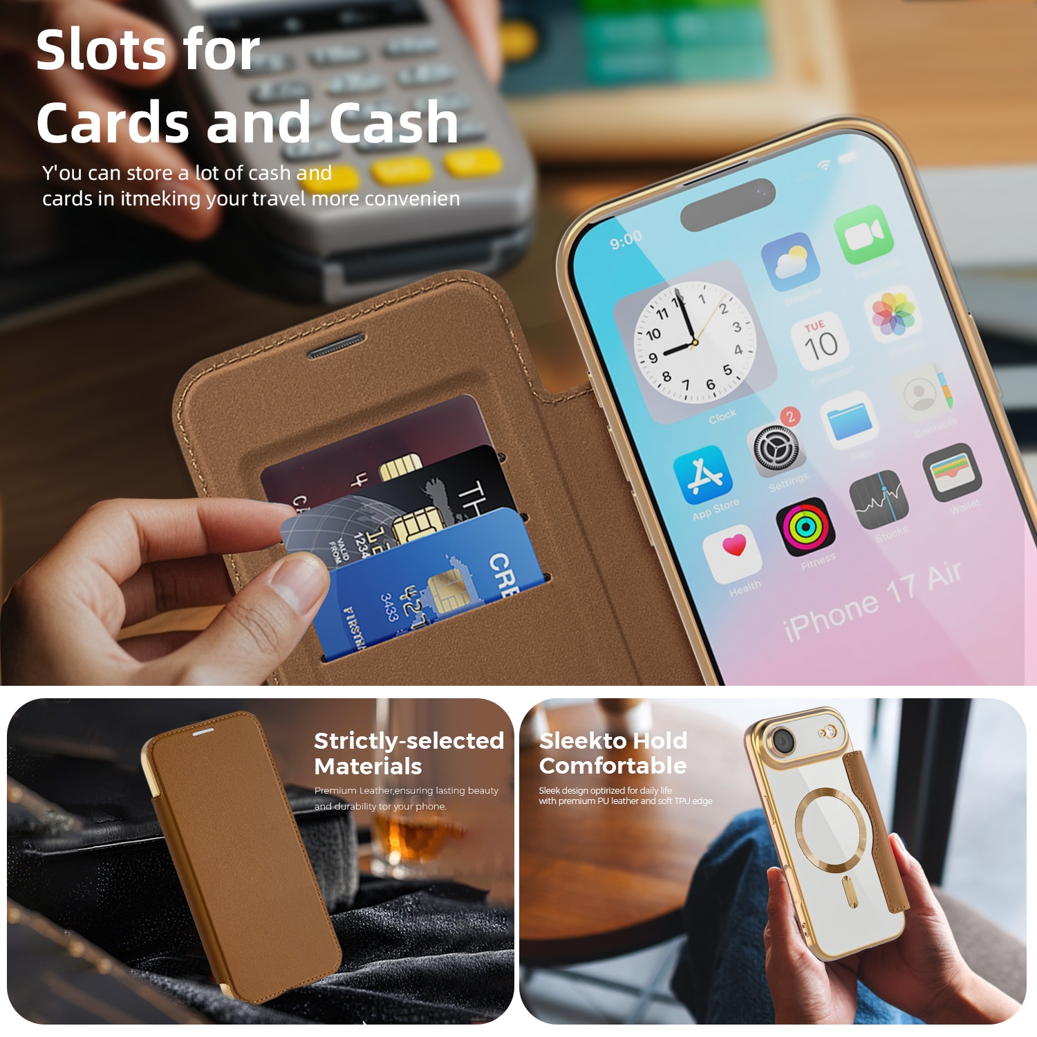 CS-UN-0117-2853BR Premium Business PU Folio Case for iPhone Air - Brown (1PCS)