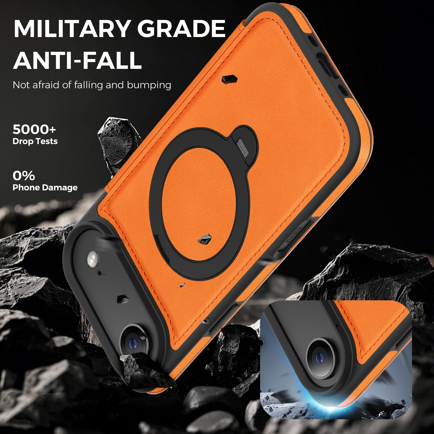360° Rotating Stand iPhone Air Case - Magnetic Wireless Charging PU Cover - Orange