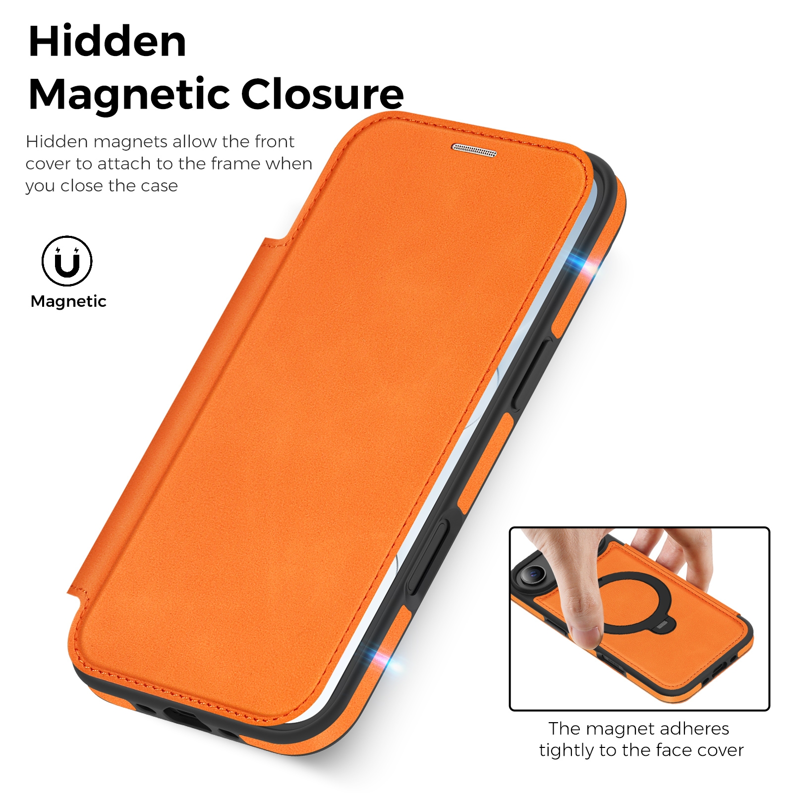 CS-UN-0115-2853OR 360° Rotating Stand iPhone Air Case - Magnetic Wireless Charging PU Cover - Orange (1PCS)