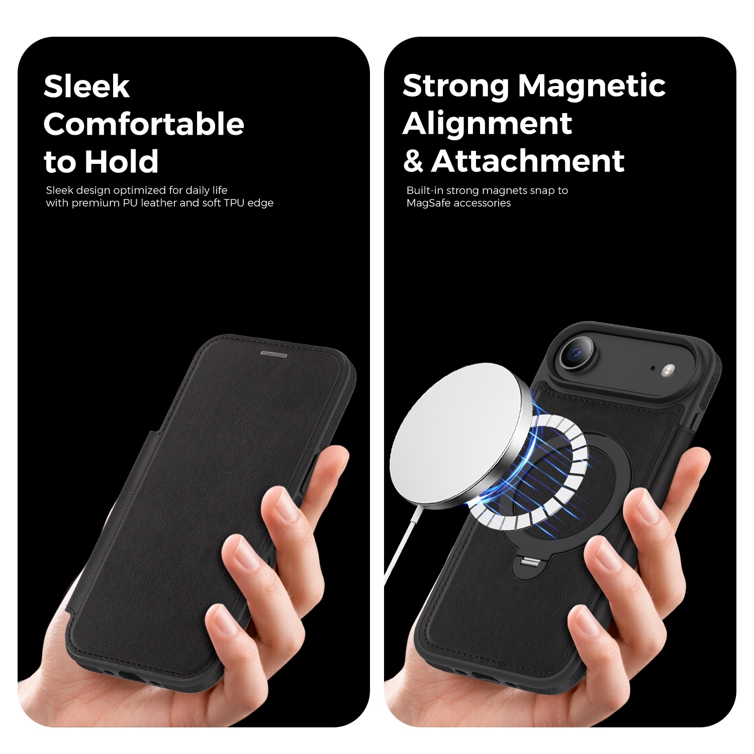 CS-UN-0115-2853BK 360° Rotating Stand iPhone Air Case - Magnetic Wireless Charging PU Cover - Black (1PCS)