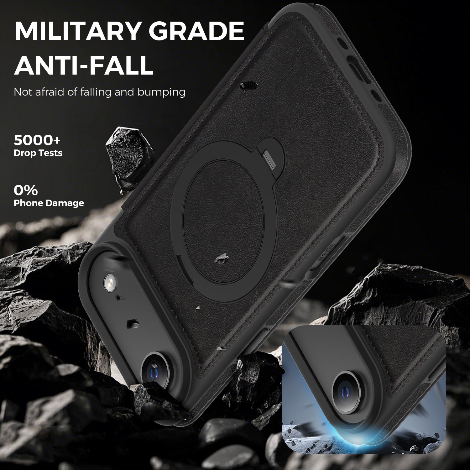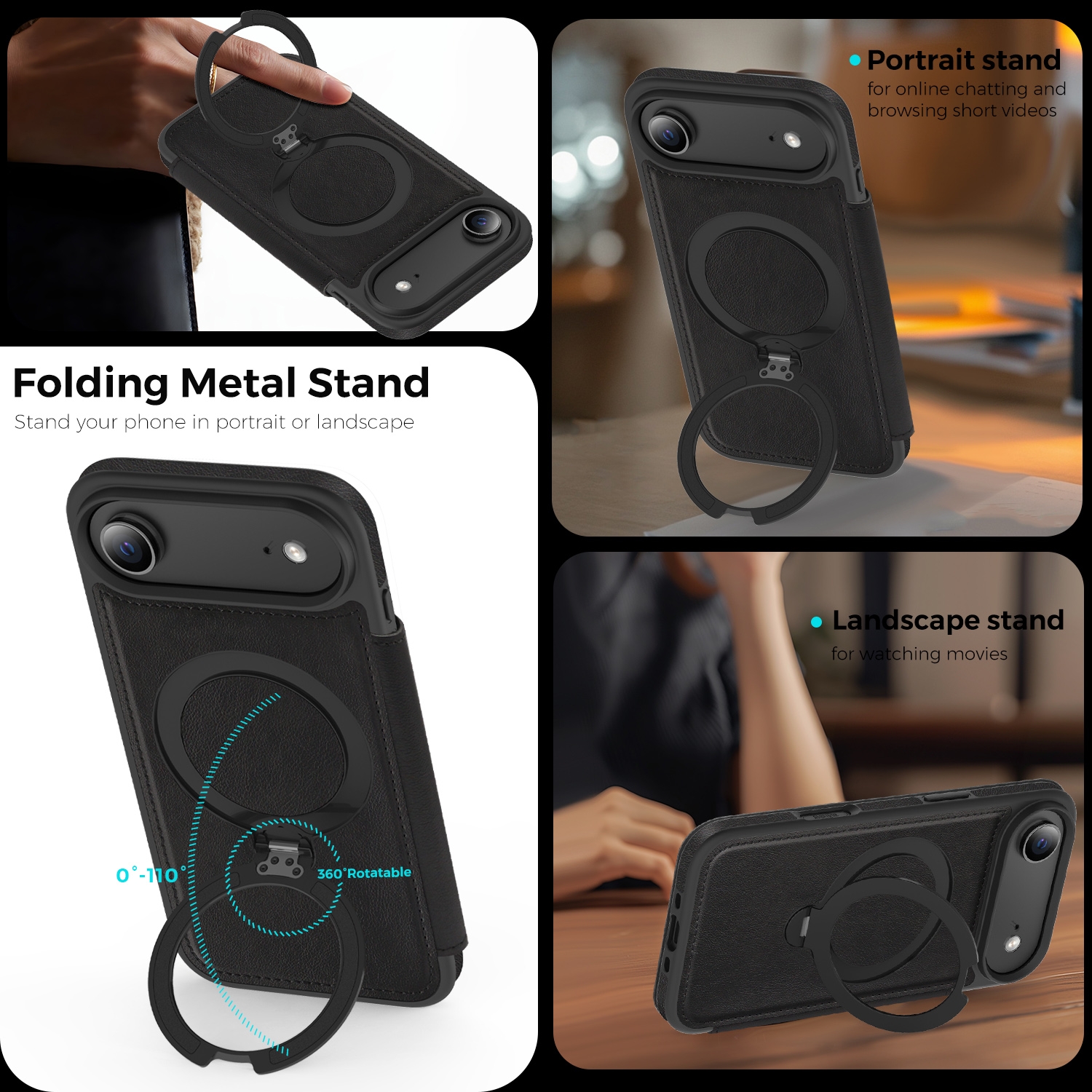 360° Rotating Stand iPhone Air Case - Magnetic Wireless Charging PU Cover - Black