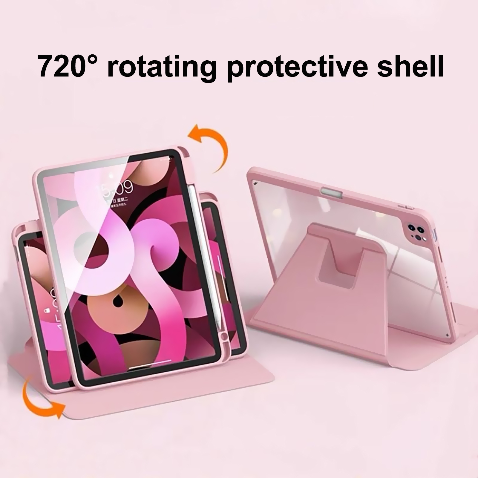 CS-UN-0150-2807BK 360° Rotating iPad Case with Pencil Holder for iPad Air4/Air5/Air6/Air7 - Black (1PCS)