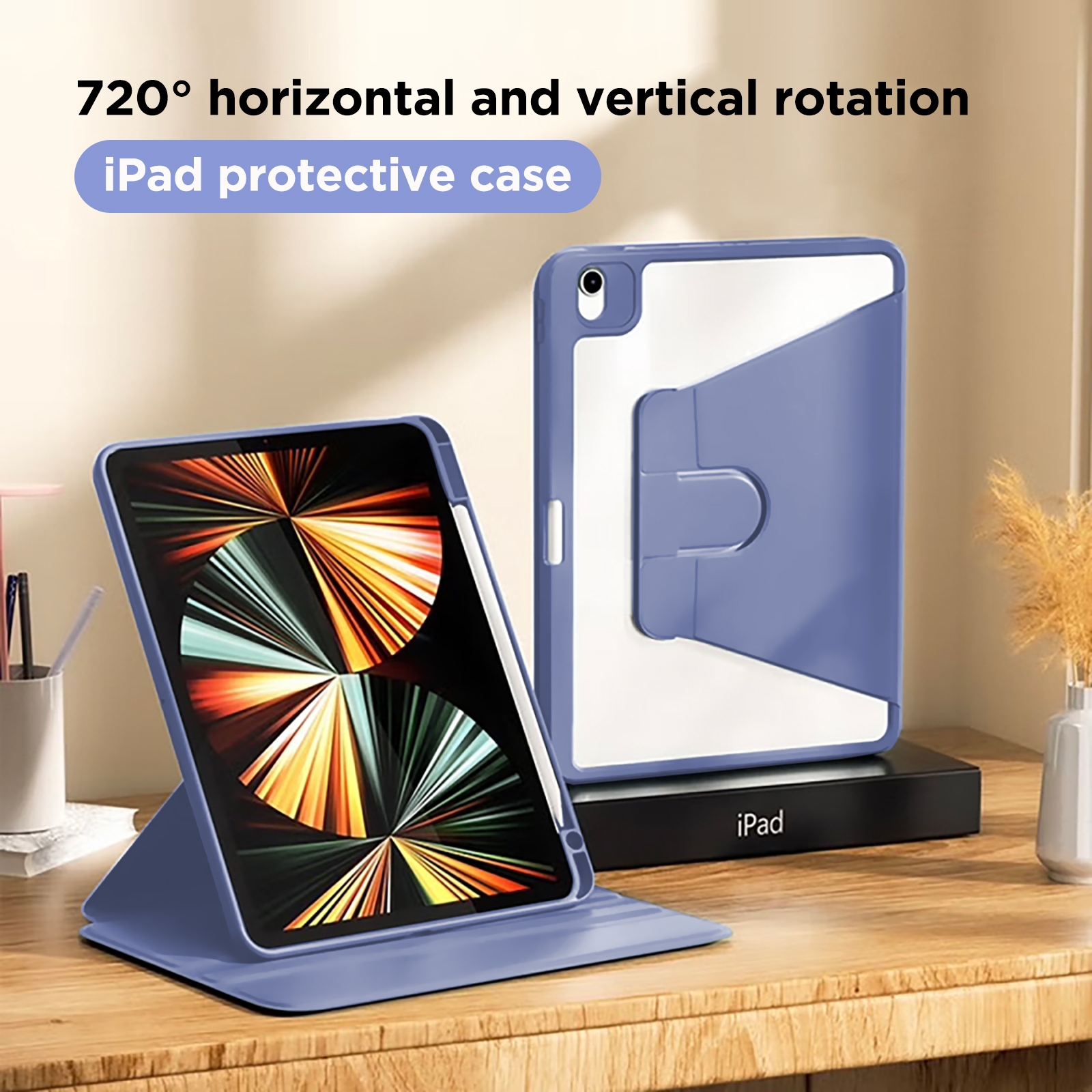 360° Rotating iPad Case with Pencil Holder for iPad Air4/Air5/Air6/Air7, Purple