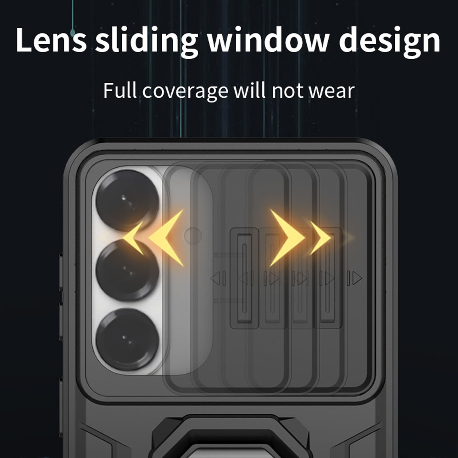 Phone Case for S26 with Sliding Lens Cover & Foldable Ring Holder, Black