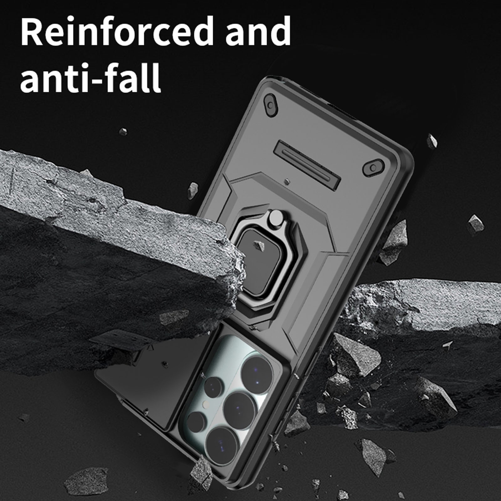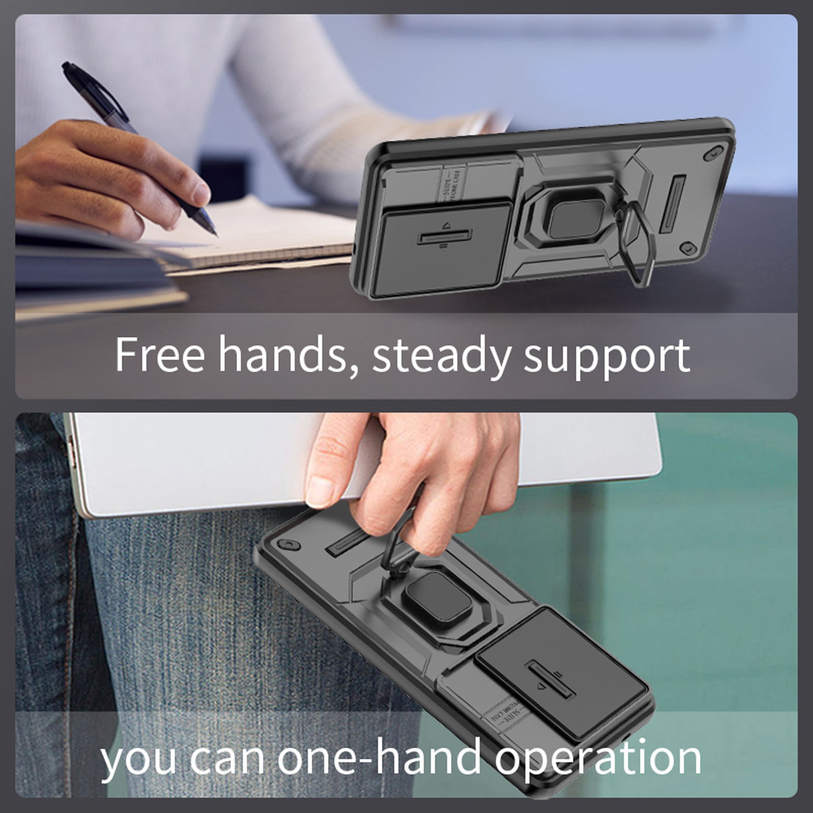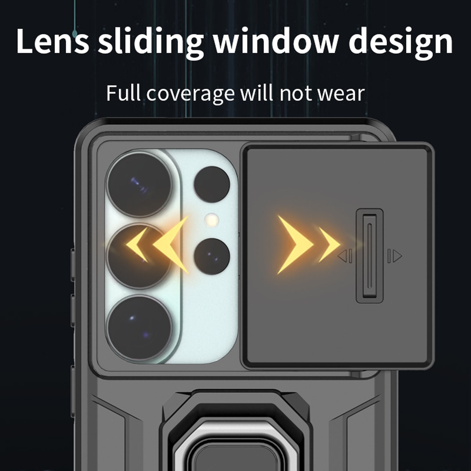 CS-UN-0153-2918BK Phone Case for S26 Ultra with Sliding Lens Cover & Foldable Ring Holder - Black (1PCS)