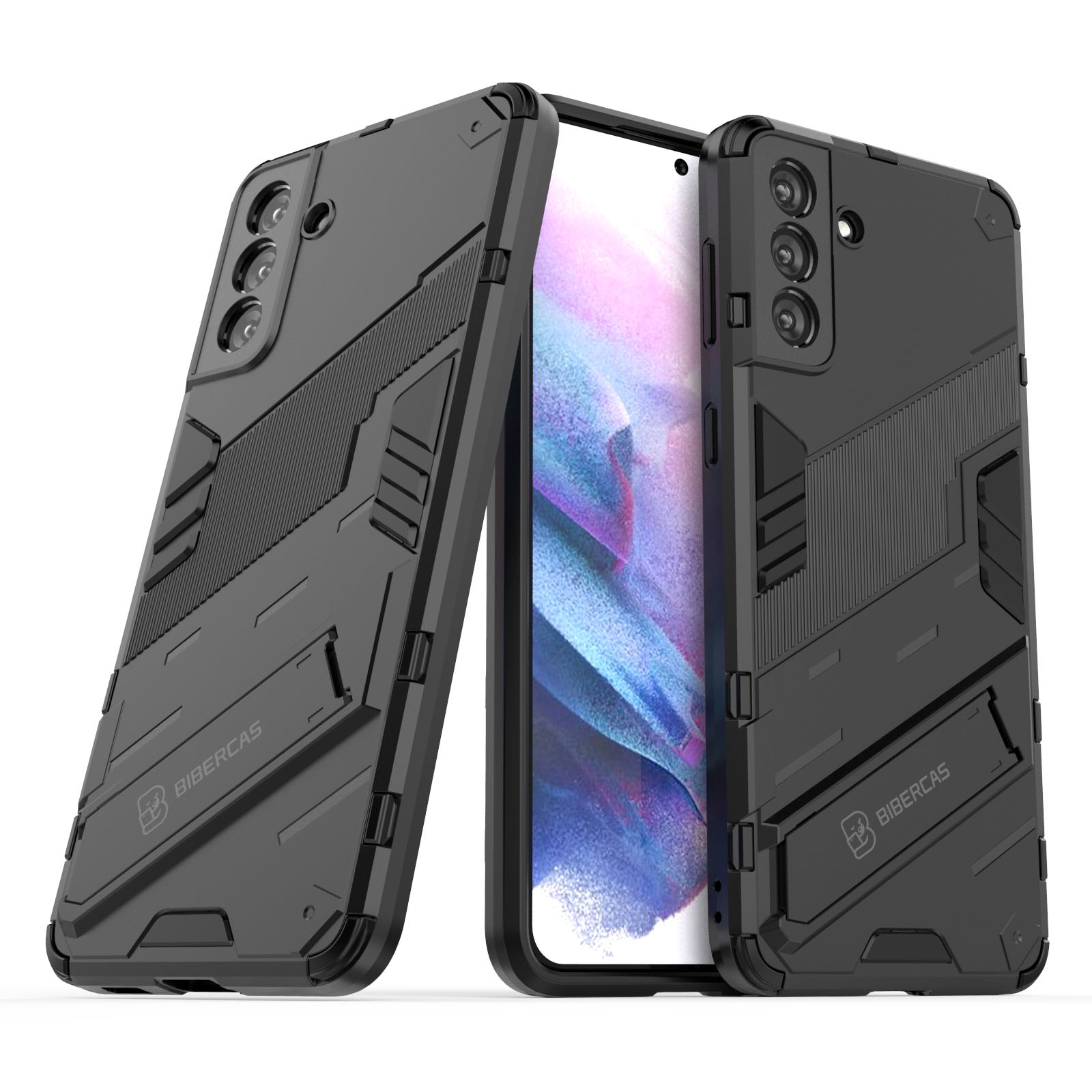 CS-UN-0155-2916BK Armor Texture Phone Case with Foldable Hidden Stand for S26 - Black (1PCS)