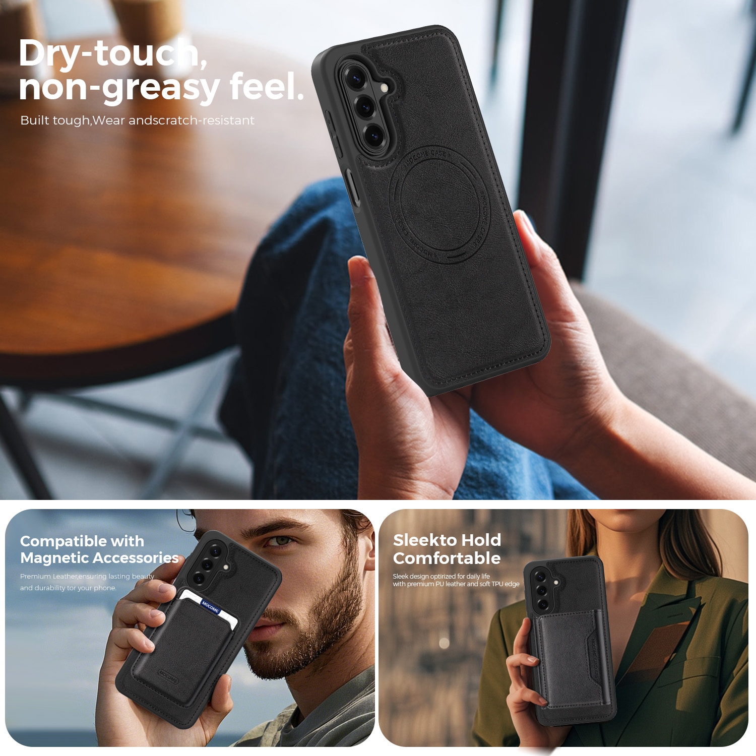 MagSafe PU Leather Card Holder – Magnetic Phone Wallet – Black