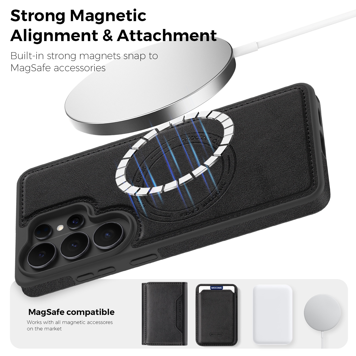 Shockproof PU Back Panel Magnetic Phone Case for S26 Ultra, Black