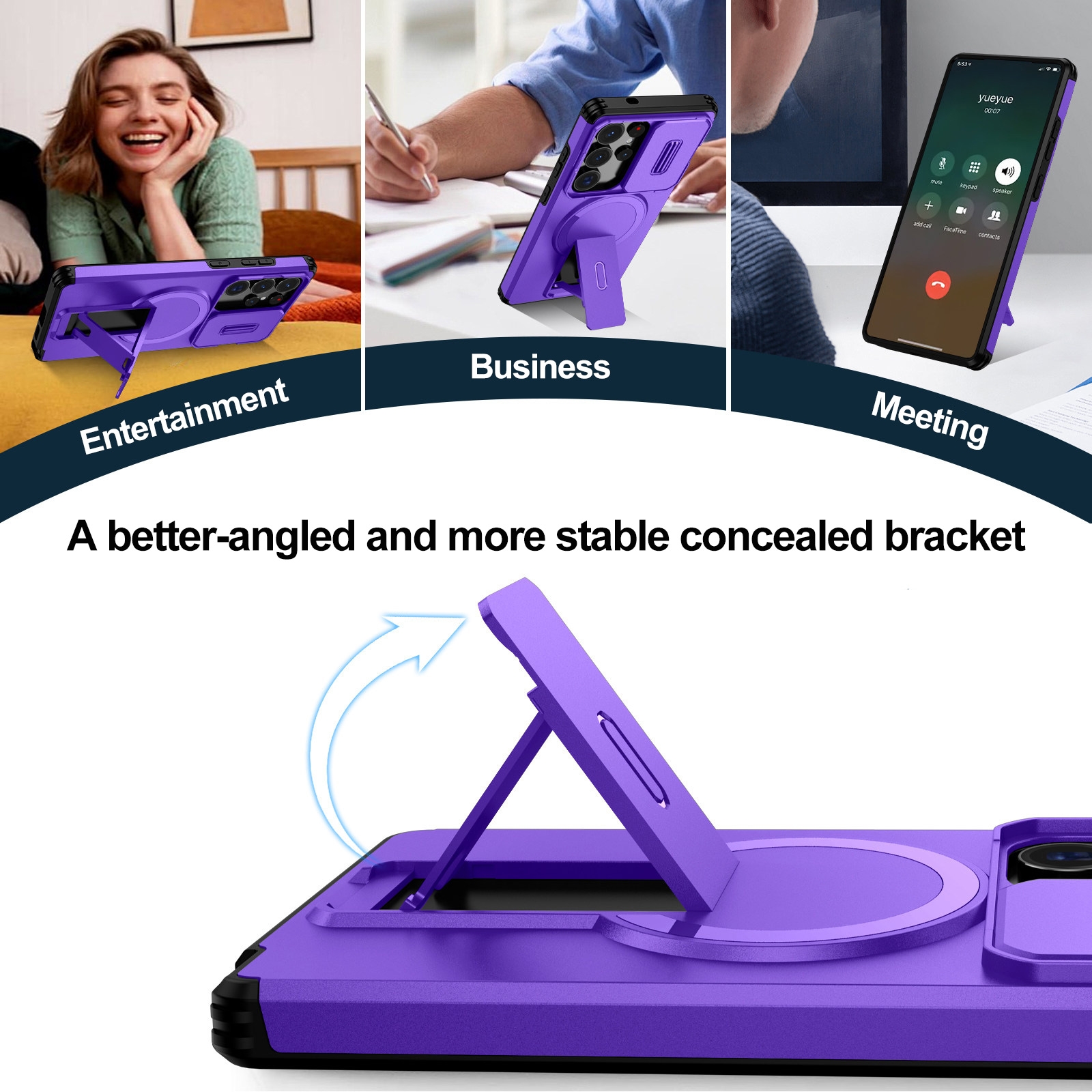 S26 Plus Hidden Kickstand Armor Design Protective Case, Purple