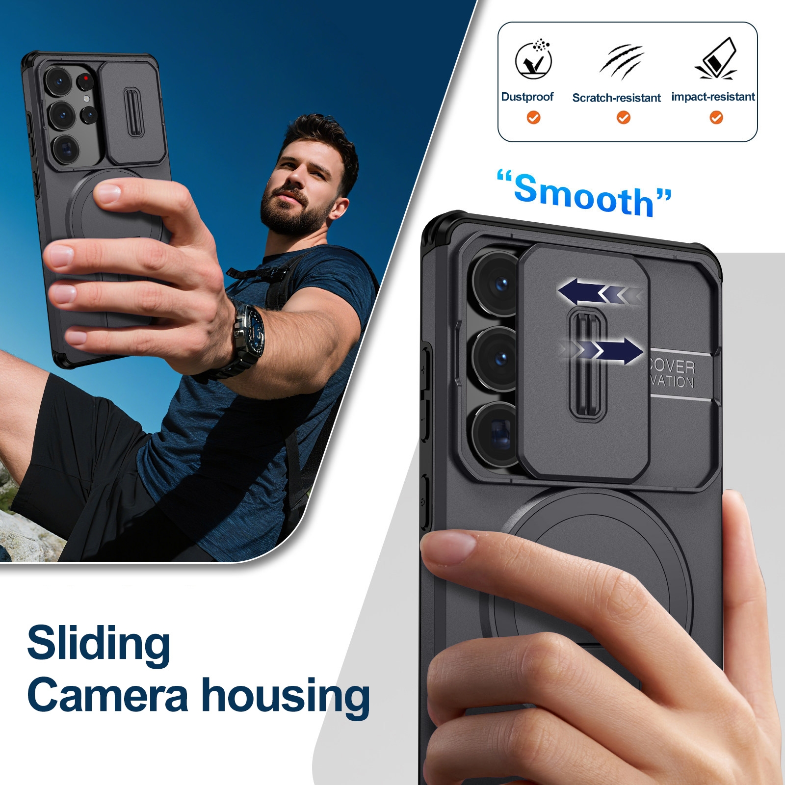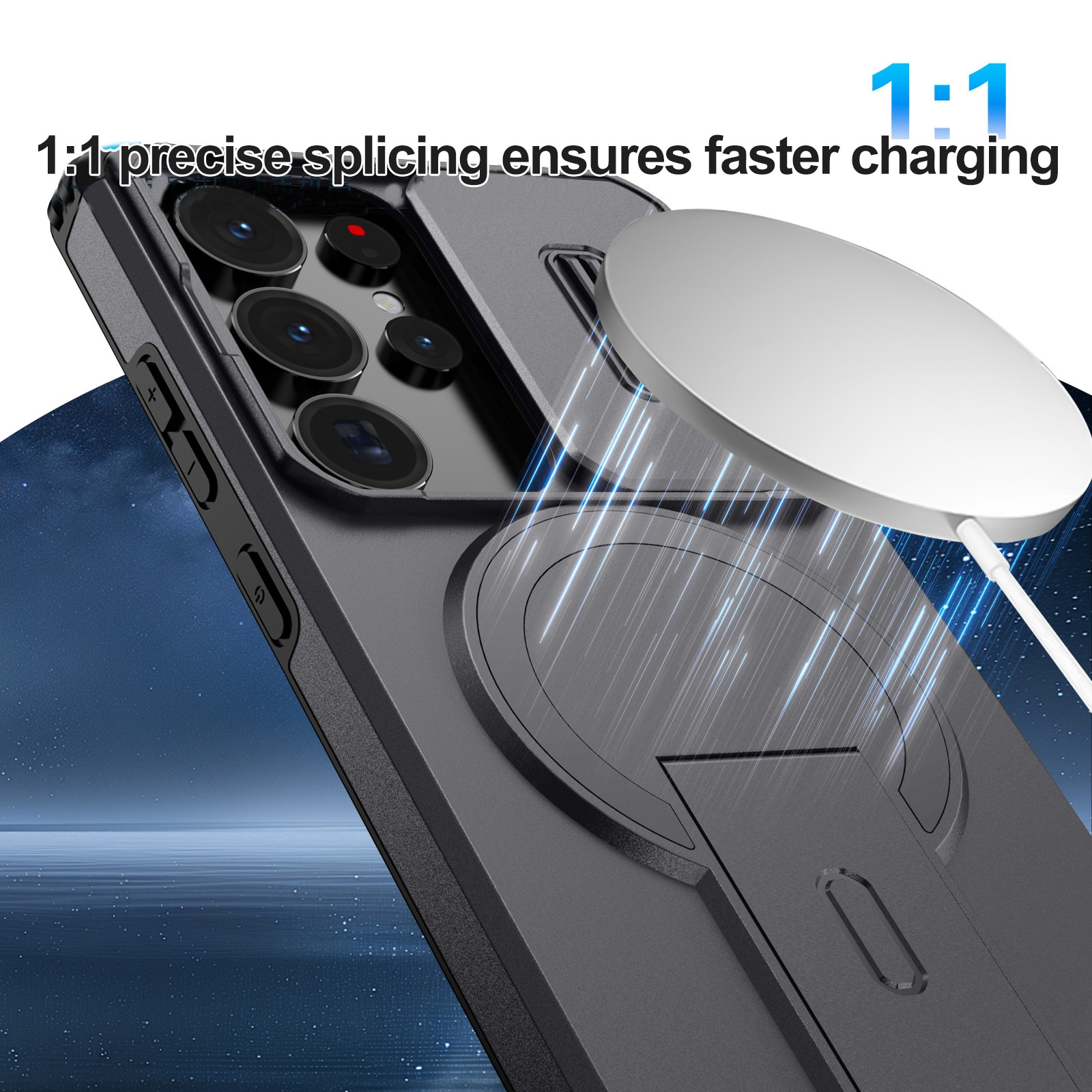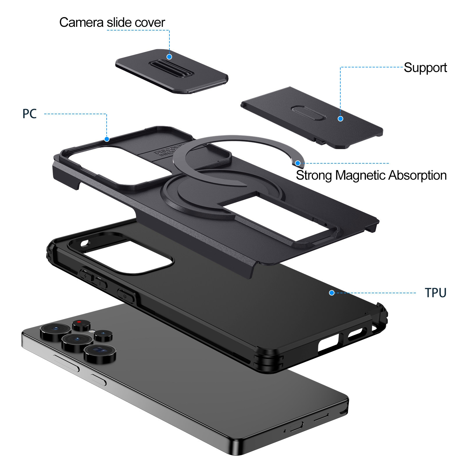 S26 Ultra Hidden Kickstand Armor Design Protective Case, Black