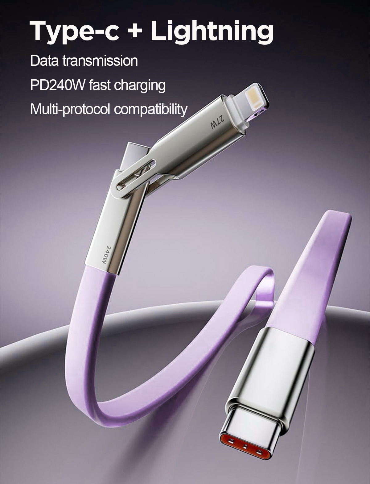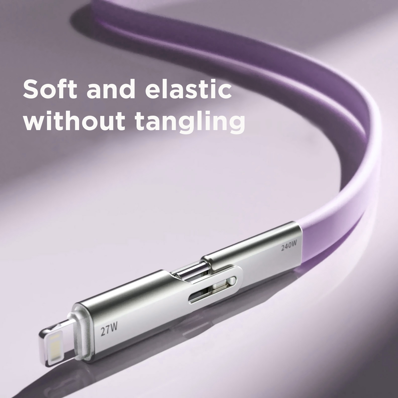 DA-UN-0168-2886PL 240W 2-in-1 Charging Cable for iPhone and USB-C Devices - 1.2m Silicone Data Cable - Purple (1PCS)