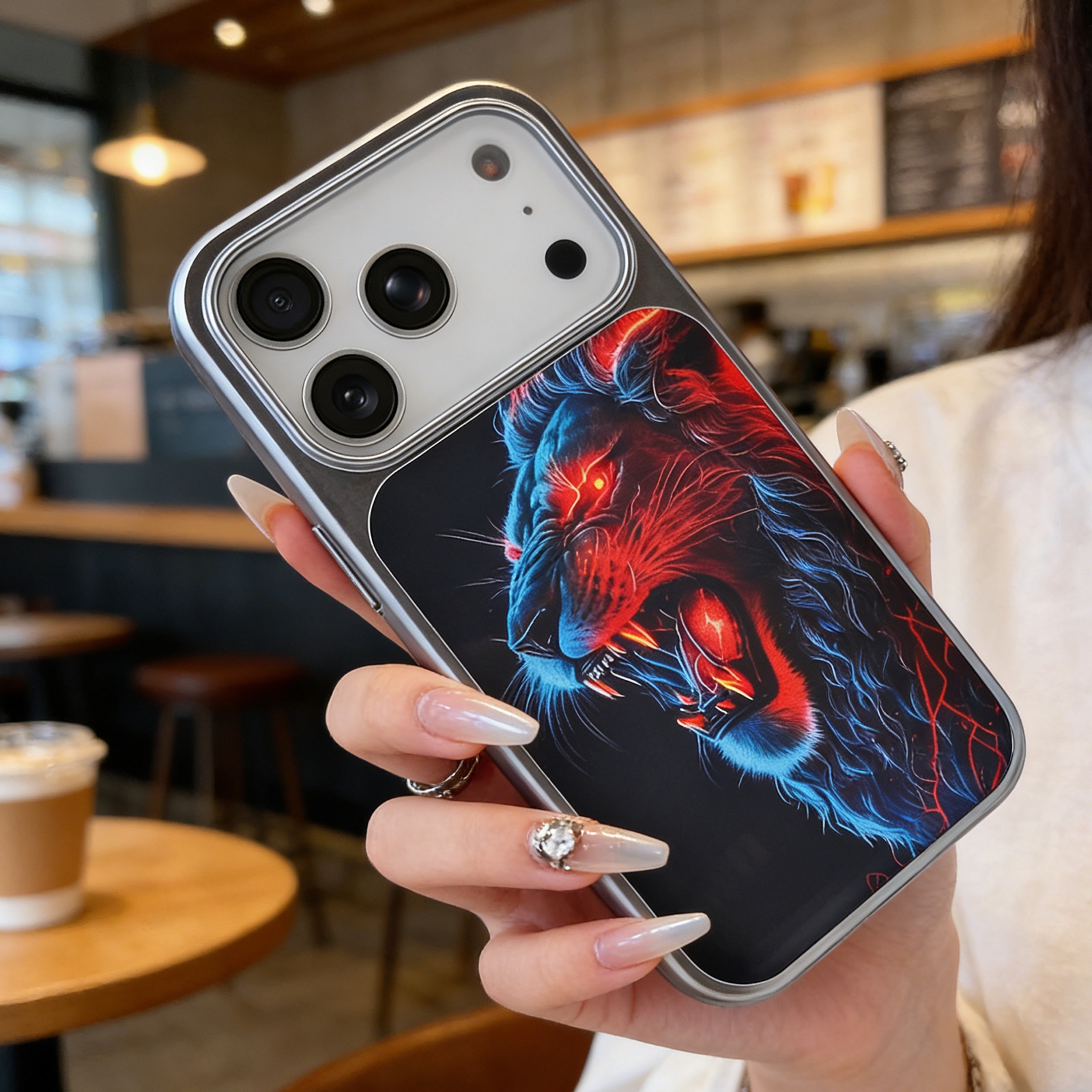 Neon Electric Lion Art Case Features with MagSafe for iPhone 17 Pro Max