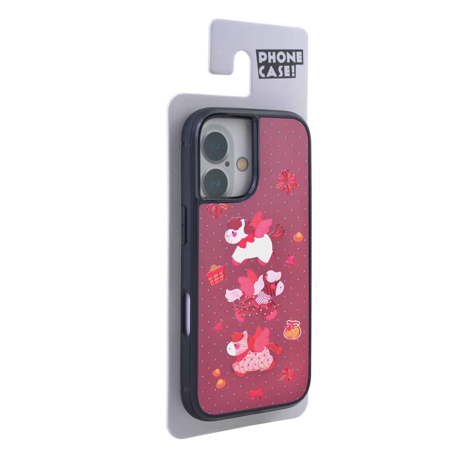 CS-UN-0187-2852BK Magnetic Cute Pony Phone Case for iPhone 17 - Maroon Background with Glitter Accents (1PCS)