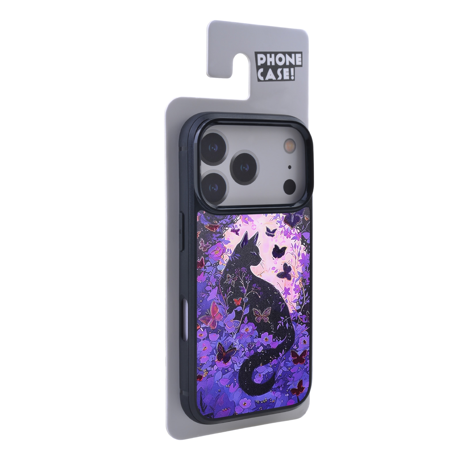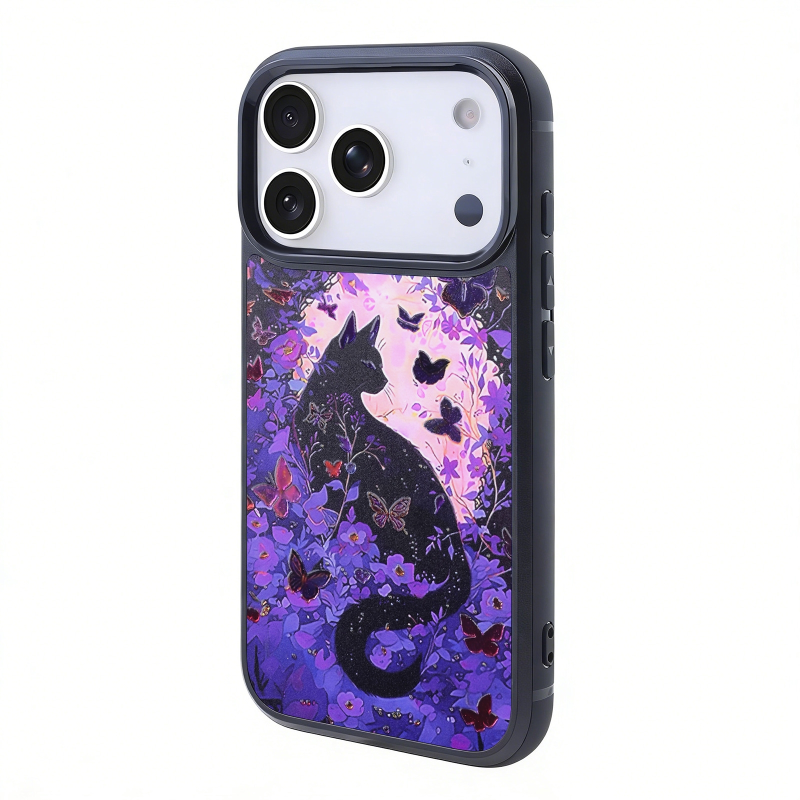 CS-UN-0192-2854BK Mysterious Cat and Purple Flowers Print Magnetic Case for iPhone 17 Pro (1PCS)