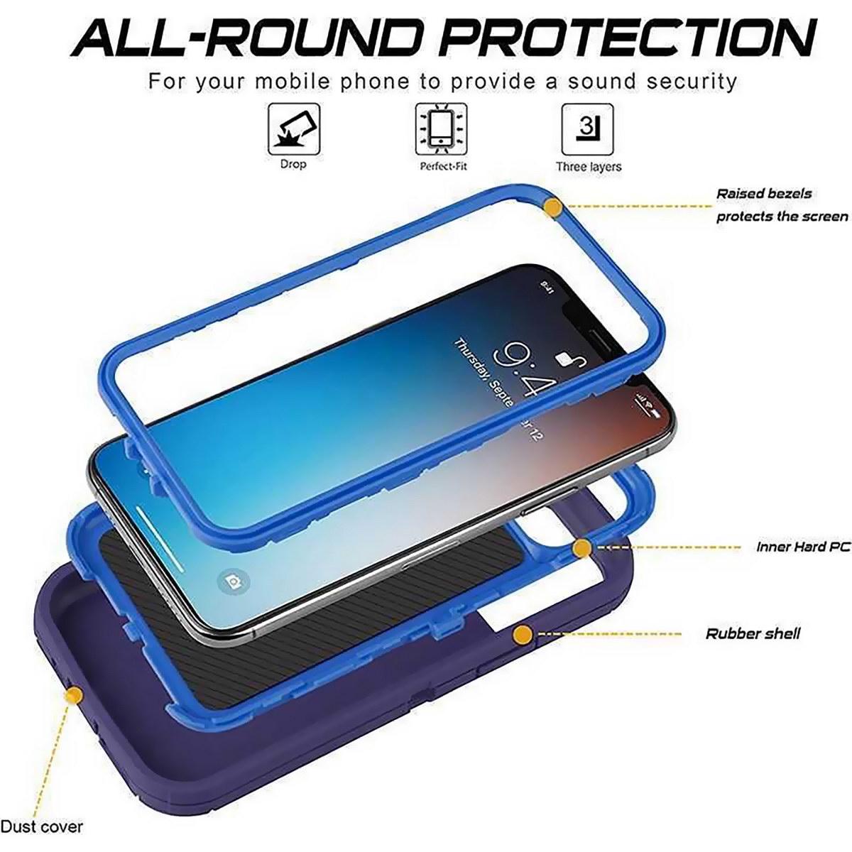 • 3-Layer Interlocking Structure: It consists of a solid inner polycarbonate (PC) frame that encases the phone, surrounded by a flexible outer rubber shell to absorb impact.