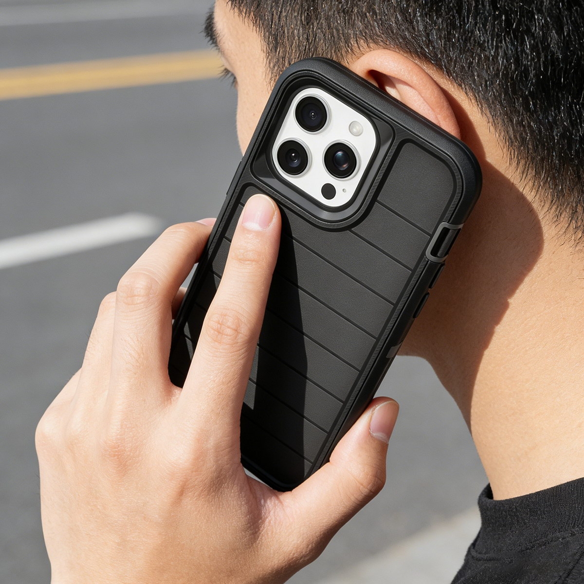 • 3-Layer Interlocking Structure: It consists of a solid inner polycarbonate (PC) frame that encases the phone, surrounded by a flexible outer rubber shell to absorb impact.