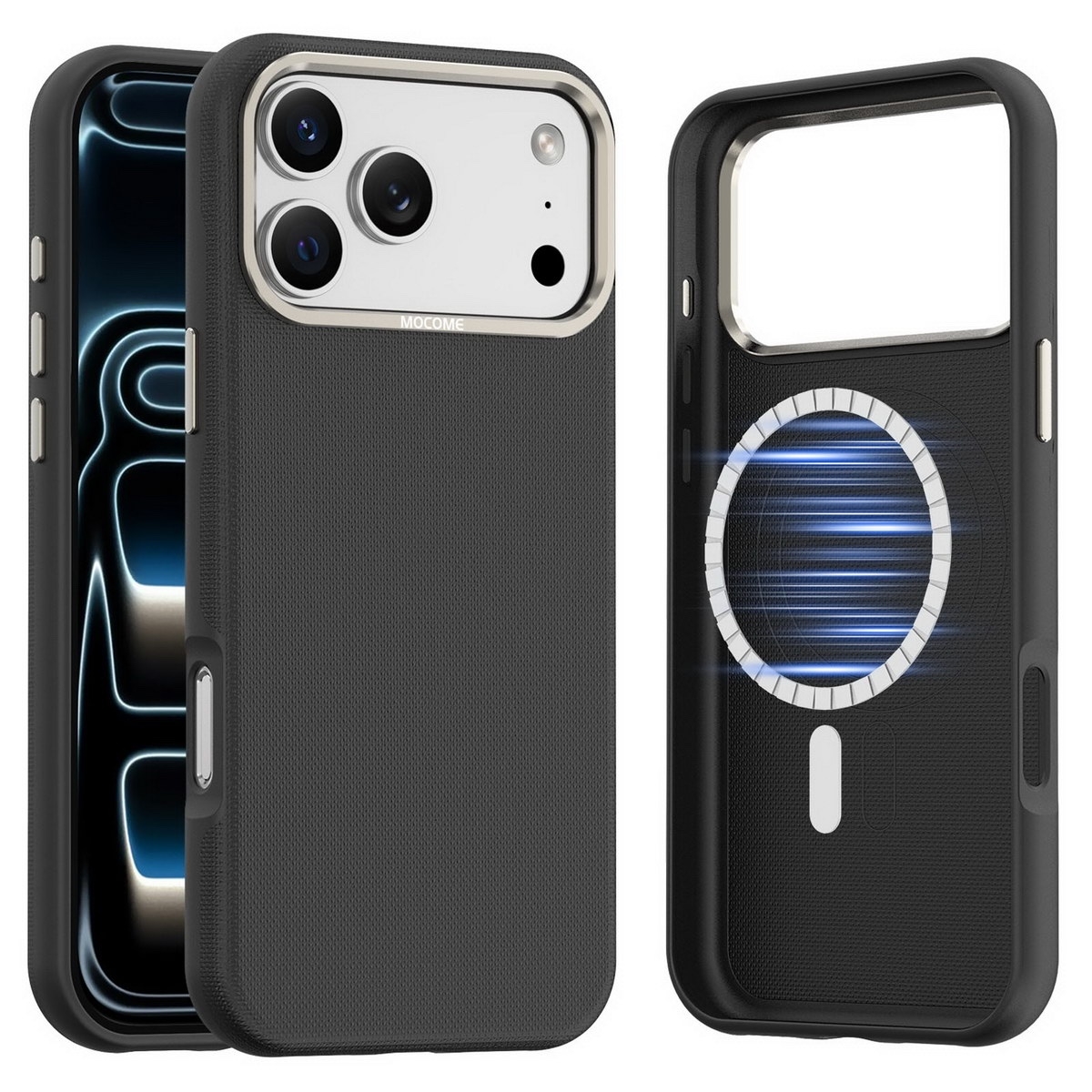 CS-UN-0206-2854BK Matte Grid Texture Case for iPhone 17 Pro - Metal Camera Frame & Magnetic Charging Support - Black (1PCS)