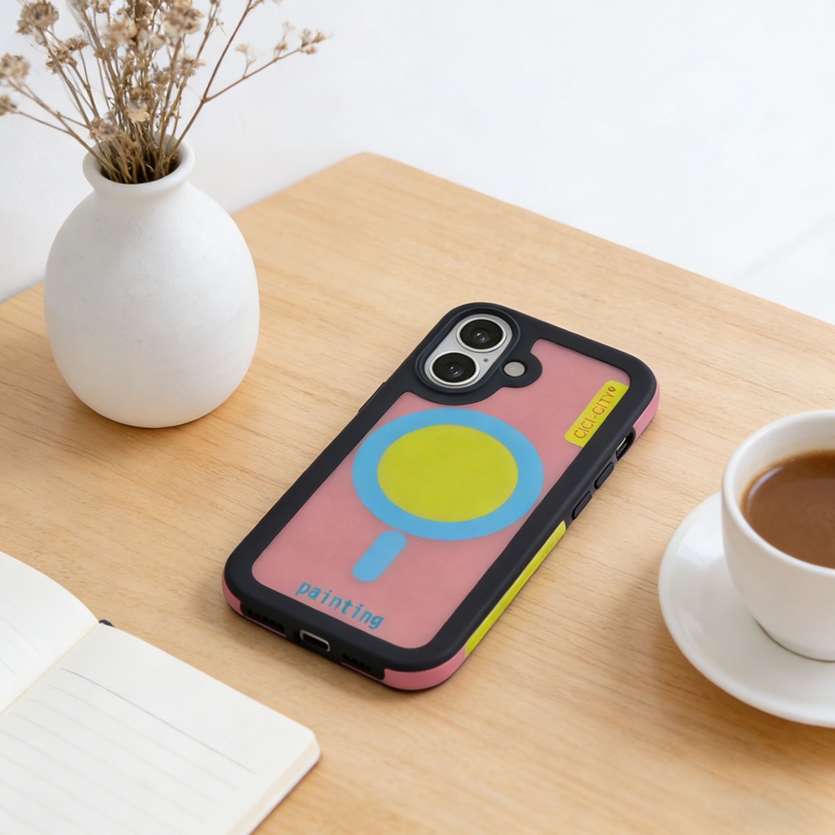 • Pastel Color Block Design: The case features a distinct two-tone aesthetic with a pastel black border and a frosted pink back panel. The center magnetic ring area includes a printed inspirational quote for a unique typographic look.