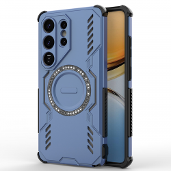 360 Rotation Kickstand Magnetic S26 Ultra Case - Airbag Shockproof Metal Stand - Blue